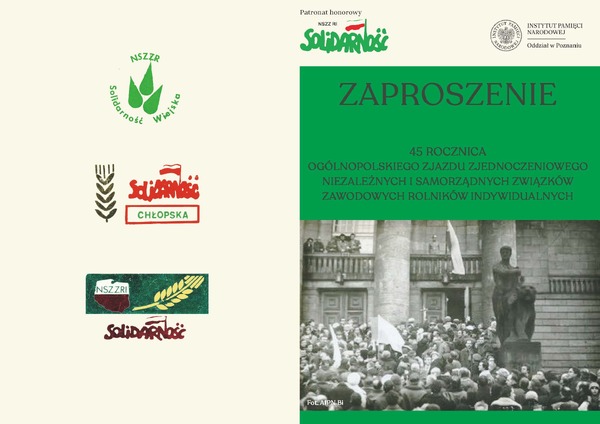 09/03/2026ZaproszeniePanel dyskusyjny z okazji 45. rocznicy ogólnopolskiego zjazdu zjednoczeniowego niezależnych i samorządnych związków zawodowych rolników indywidualnych – Poznań, 9 marca 2026