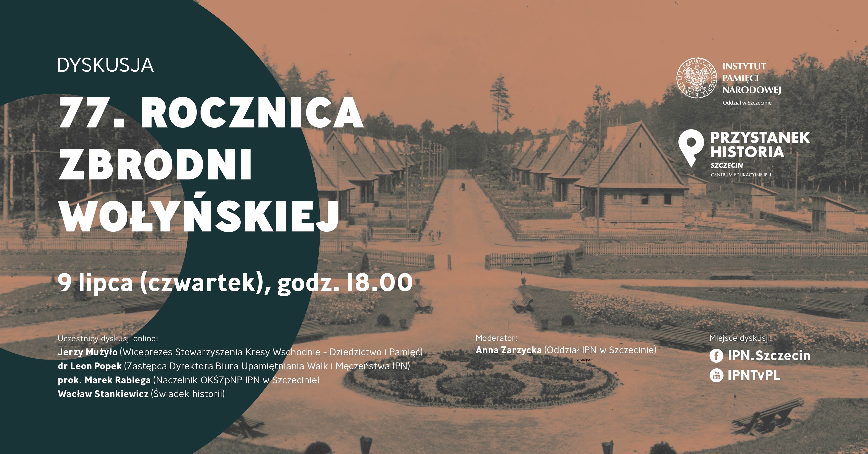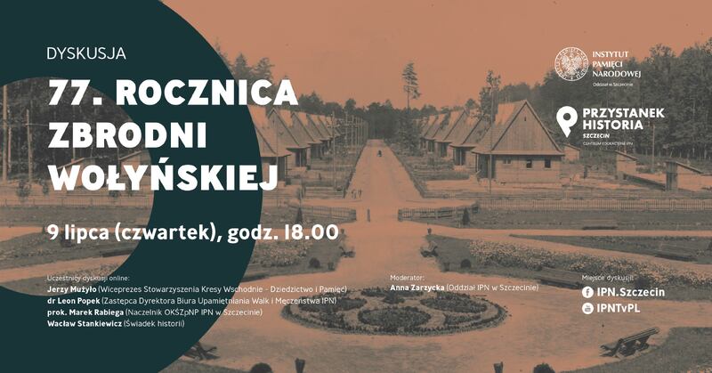Na fanpage'u Facebook @IPN.Szczecin oraz YouTube IPNtvPL zapraszamy na kolejną dyskusję z cyklu Przystanek Historia Online: „77. rocznica Zbrodni Wołyńskiej – Pamięć i Prawda”.