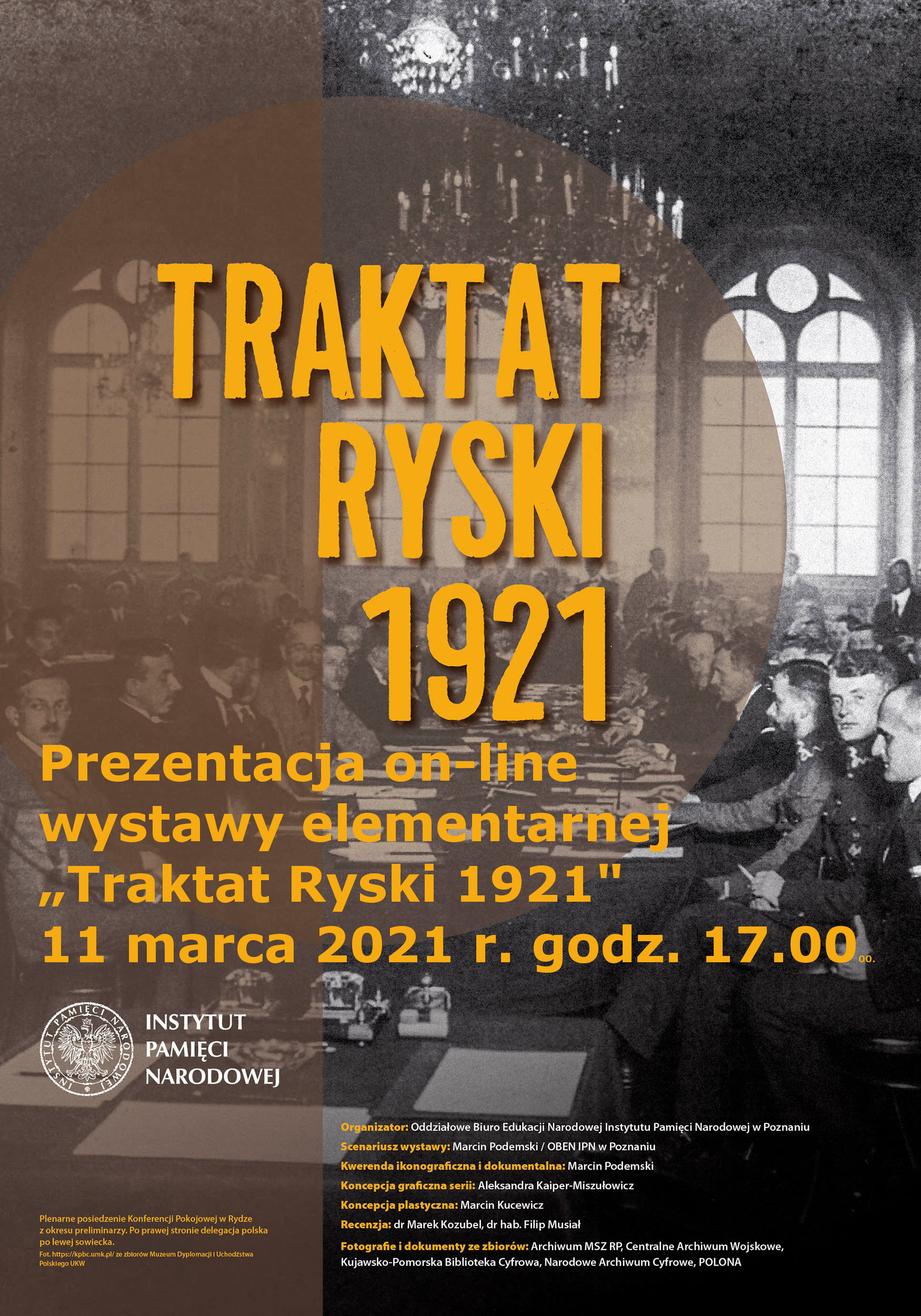 Spotkanie będzie miało charakter wykładu prowadzonego przez autora wystawy Marcina Podemskiego, który przybliży często mało znane wątki dotyczące oficjalnych i nieoficjalnych rozmów pokojowych prowadzonych praktycznie przez cały okres wojny polsko-bolszewickiej.