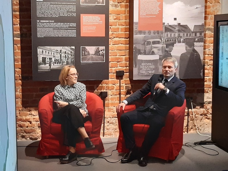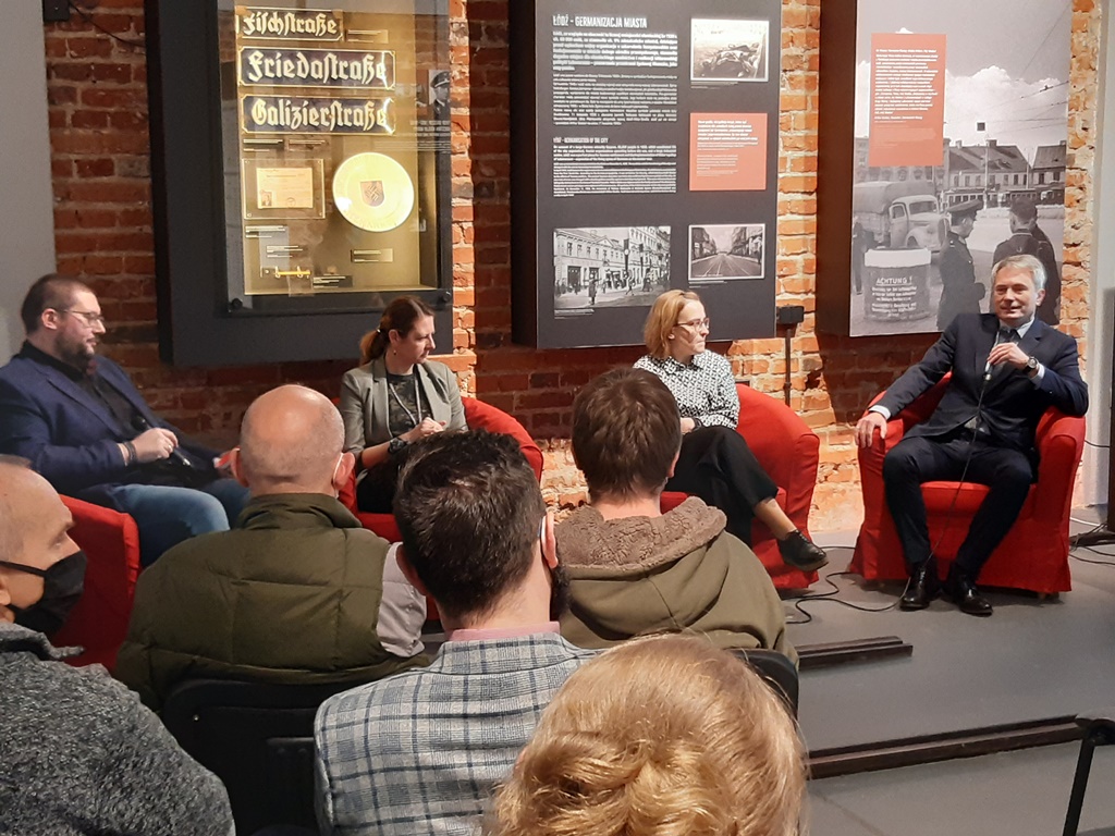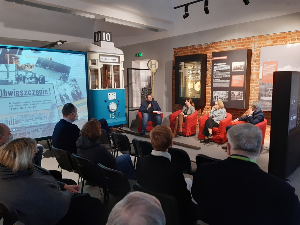 Po kuratorskim oprowadzeniu po wystawie zebrani udali się do budynku MTN, gdzie wysłuchali dyskusji panelowej dotyczącej okoliczności powstania i funkcjonowania Wartheland, a także optymalnych sposobów upowszechniania wiedzy historycznej na temat warunków życia Polaków, Żydów i Niemców na ziemiach polskich włączonych do III Rzeszy. W dyskusji udział wzięli: dr Katarzyna Czekaj-Kotynia z MTN, dr Izabela Mazanowska z bydgoskiej delegatury IPN oraz dr Adam Pleskaczyński z OBBH IPN w Poznaniu. Dyskusję moderował dr Sebastian Adamkiewicz z MTN.