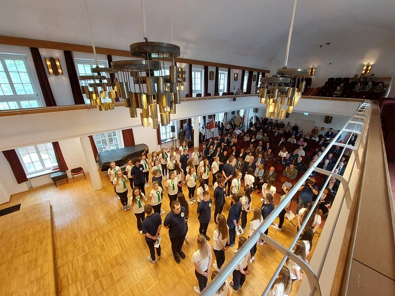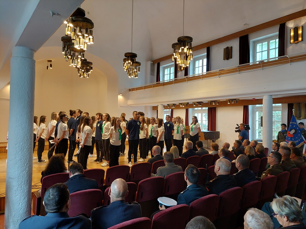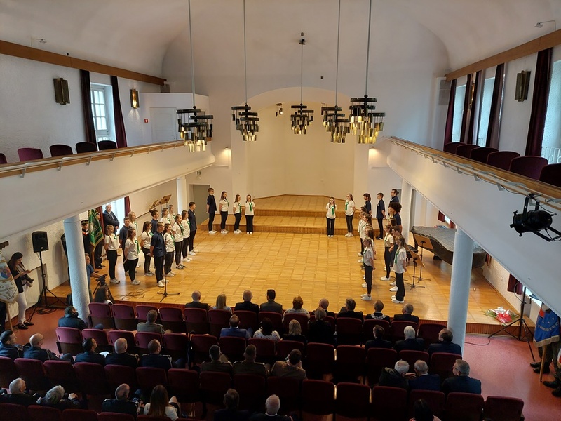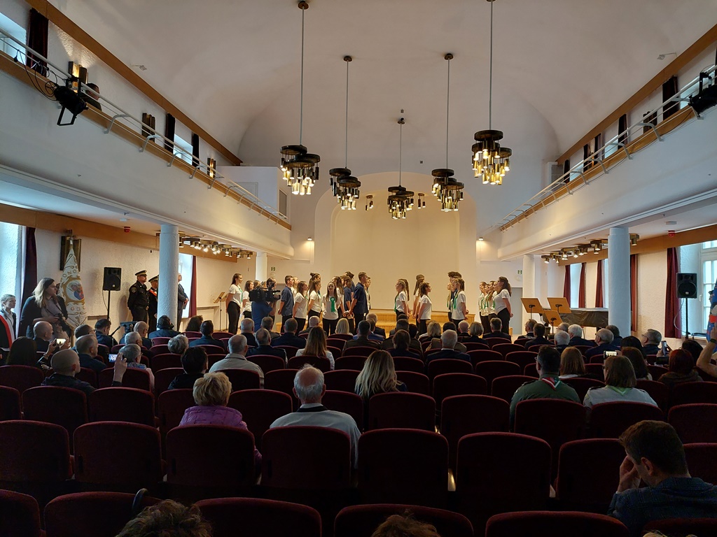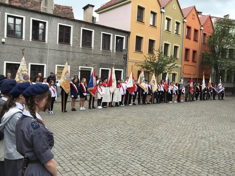 Następnie wszyscy zgromadzeni przeszli na główną część obchodów pod Filharmonię Zielonogórską (dawny Dom Katolicki). Obok przemówień i wręczenia odznaczeń państwowych, ich częścią był program słowno-muzyczny w wykonaniu młodzieży z Zespołu Szkół Ekologicznych im. Unii Europejskiej.