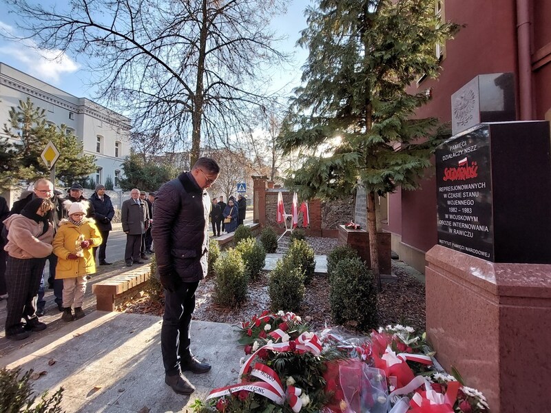 Uroczystość, podczas której IPN reprezentowali naczelnik OBUWiM Wojciech Chałupka oraz Kacper Awzan, rozpoczęła się złożeniem kwiatów pod pomnikiem uwięzionych w rawickim Wojskowym Obozie Internowania. Następnie, odsłonięto tablicę informacyjną poświęconą Bronisławowi Lachowiczowi.