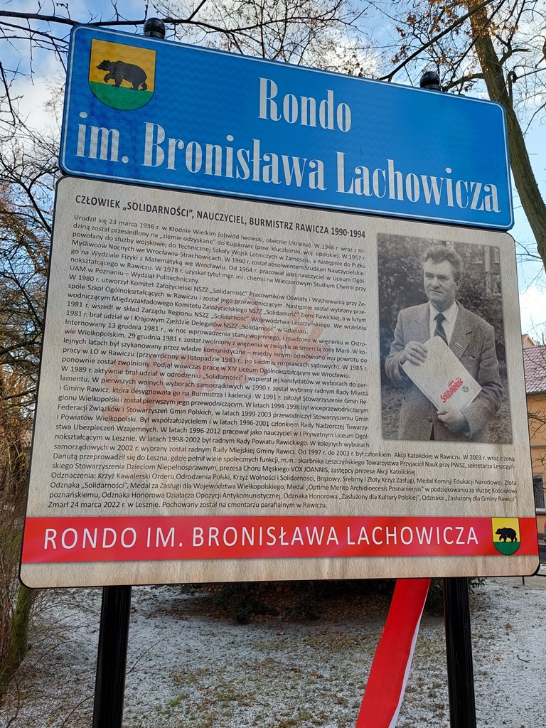 W 41. rocznicę wprowadzenia stanu wojennego bezimienne dotychczas rondo przy rawickich plantach zyskało najbardziej odpowiedniego patrona – Bronisława Lachowicza. Ten zasłużony działacz rawickiej „Solidarności”, internowany w czasie stanu wojennego, został po upadku komunizmu pierwszym demokratycznie wybranym burmistrzem miasta.