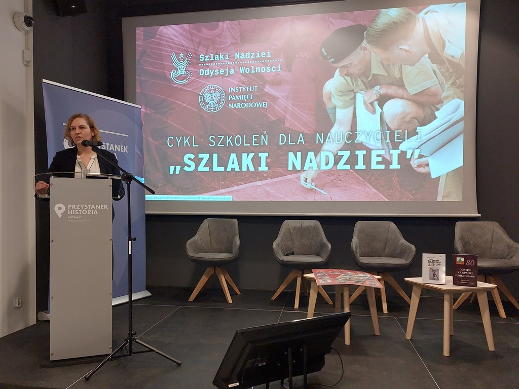 20 lutego 2023 r. w Przystanku Historia IPN w Poznaniu odbyło się pierwsze szkolenie dla nauczycieli z cyklu „Szlaki nadziei – armia gen. Andersa”. Na początku spotkania nauczycielom przedstawiono główne założenia projektu IPN „Szlaki nadziei. Odyseja wolności” oraz materiały edukacyjne związane z historią armii gen. Andersa i Polskimi Siłami Zbrojnymi w czasie II wojny światowej. Podczas spotkania uczestnicy wysłuchali wykładu dr. hab. prof. UAM Konrada Białeckiego, Naczelnika Oddziałowego Biura Badań Historycznych IPN w Poznaniu, na temat sytuacji Polski po wrześniu 1939 r. z uwzględnieniem wątków walk Polaków o Narwik, Francję i Wielką Brytanię.
