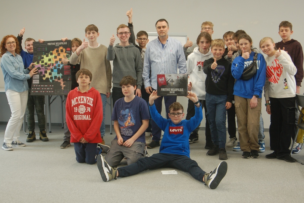 Prezentacja gry „Powstanie Wielkopolskie 1918-1919” w szkole Podstawowej im. Generała Józefa Dowbor Muśnickiego – Lusowo, 18 kwietnia 2023