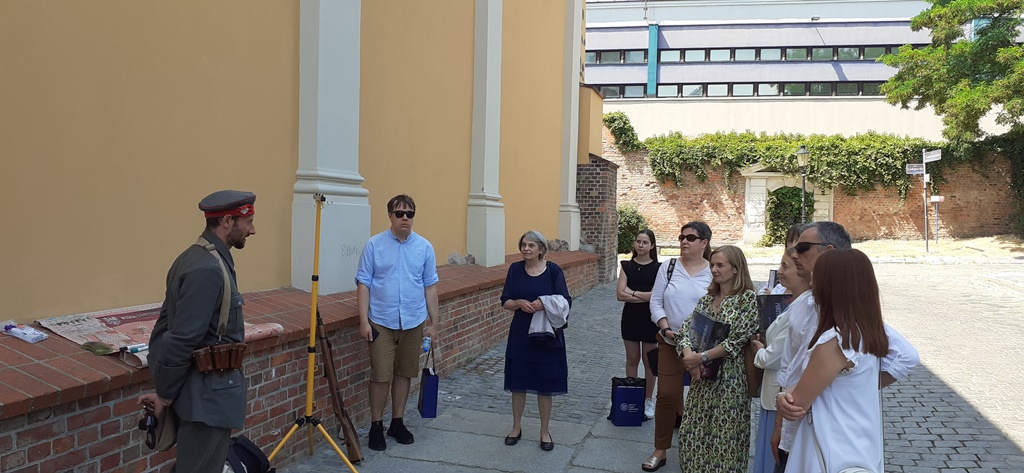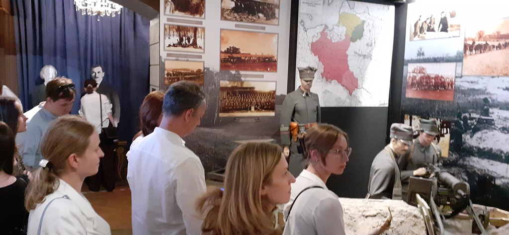 Po zakończeniu gali uczestnicy konkursu udali się do miejsc pamięci związanych z Powstaniem Wielkopolskim. Podążyli trasą jaką przebył ksiądz Bolesław Kaźmierski w 1918 r. ze swoimi parafianami, a szczególnie parafiankami przyodzianymi w szamotulskie stroje ludowe na powitane Ignacego Paderewskiego. Odwiedzili historyczną płytę Placu Wolności: miejsce pierwszych walk w grudniu 1918 r. (w pobliżu hotelu Bazar i Prezydium Policji), a także miejsce złożenia uroczystej przysięgi przez żołnierzy 1 Pułku Strzelców Wielkopolskich oraz Pułku Konnych Strzelców Straży Miasta Poznania wraz z wręczeniem sztandarów w dniu 26 stycznia 1919 r. W hotelu Bazar w grudniu 1918 r. gościł Ignacy Paderewski. W miejscu, w którym dziś stoi budynek Muzeum Narodowego w Poznaniu wcześniej znajdował się budynek niemieckiego dowództwa V Korpusu, zajętego przez powstańców w pierwszych dniach powstania. Uczestnicy konkursu ulicą Ignacego Paderewskiego udali się na Stary Rynek, gdzie zwiedzili ekspozycję przygotowaną przez Muzeum Powstania Wielkopolskiego 1918-1919 (Oddział Wielkopolskiego Muzeum Niepodległości). Ekspozycje prezentował kierownik Muzeum Marcin Wiśniewski. Niezmiernie ciekawie przedstawia się prezentacja drogi Wielkopolan do niepodległości. Za pomocą rycin ujmuje kolejne czyny zbrojne z lat: 1794, 1806, 1846, 1848. Ukazana została też praca organiczna oraz działania mające na celu podniesienie świadomości narodowej ludu wielkopolskiego. Zaprezentowane zostały sylwetki liderów i działaczy na wielu polach: kulturalnym, oświatowym, finansowym, ekonomicznym, publicystycznym, edukacyjnym. W pomieszczeniach muzeum zaaranżowano dawny dom polski z ówczesnym wyposażeniem. Jeżeli chodzi o samo powstanie zwiedzający mogli obejrzeć okopy wojenne, a także umundurowanie, uzbrojenie i wiele rekwizytów, pozyskiwanych i włączanych systematycznie do zbiorów. Ekspozycja jest bogato ilustrowana fotografiami i oddziałuje na odbiorcę również za pomocą nowoczesnych multimediów (obraz, dźwięk). Bogactwo zbiorów oraz zakres tematyczny w przyszłości będzie prezentowany w powstającej nowej siedzibie muzeum.