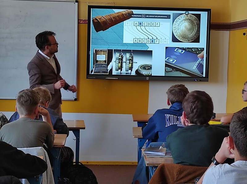 Tego samego w dnia, w Szkole Podstawowej nr 5 w przystępnej formie zajęć „Krótki kurs szyfrowania” przedstawił historię złamania „Enigmy”, następnie zaś zaprosił uczniów biorących udział w warsztatach do próby rozwiązania kilku przykładowych szyfrów. Uczniowie klasy poradzili sobie z zadaniem znakomicie.