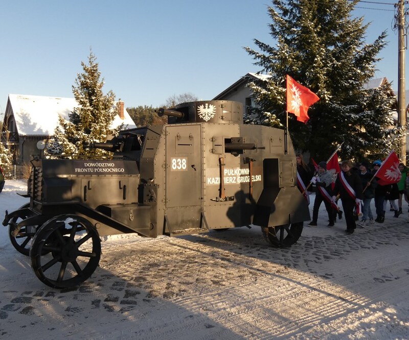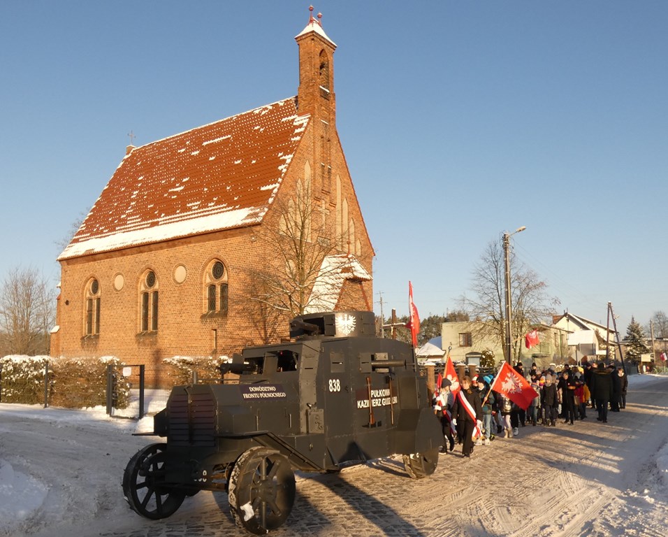 Obchody rozpoczęły się od nabożeństwa w neogotyckim kościele pw. św. Antoniego Padewskiego. Następnie uczniowie, nauczyciele i zaproszeni goście udali się na miejsce właściwych uroczystości. Na czele pochodu jechała replika słynnego samochodu pancernego Ehrhardt, zdobytego przez żołnierzy w Budzyniu w lutym 1919 roku . Wóz „pułkownik Kazimierz Grudzielski” ozdobiony powstańczym orłem, powiewające flagi państwowe oraz flagi powstańcze podczas pochodu potęgowały radosną, patriotyczną atmosferę. Przed Szkołą Podstawową im. Powstańców Wielkopolskich (placówka w tym czasie świętowała także dzień patrona) została odsłonięta tablica upamiętniającą mieszkańców Miałów, Mężyka i Białej, którzy przyłączyli się do patriotycznego zrywu i wywalczyli wolność swoich „małych ojczyzn”. Warto zauważyć, że na tablicy memoratywnej zostały umieszczone dwa odlewy: Wielkopolski Krzyż Powstańczy oraz rogatywka ozdobiona rozetką wielkopolską.