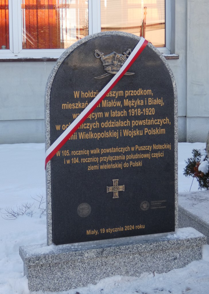 Zwycięskie Powstanie Wielkopolskie to nie tylko grudniowe uroczystości – okazji do celebrowania tego radosnego wydarzenia jest bardzo wiele. Świętuje bowiem wówczas cała Wielkopolska! W dniu 19 stycznia 2024 r. na uroczystości do Miałów udała się delegacja Instytutu Pamięci Narodowej. Ta mała wieś położona jest w jednym z największych kompleksów leśnych w Polsce – Puszczy Noteckiej. Tutaj uczczono 105. rocznicę walk powstańczych oraz 104. rocznicę przyłączenia południowej części ziemi wieleńskiej do Polski.