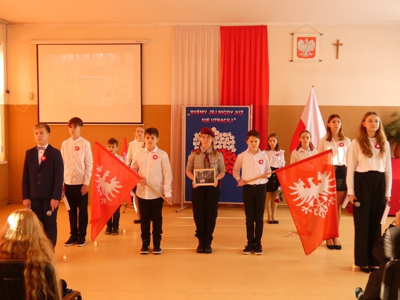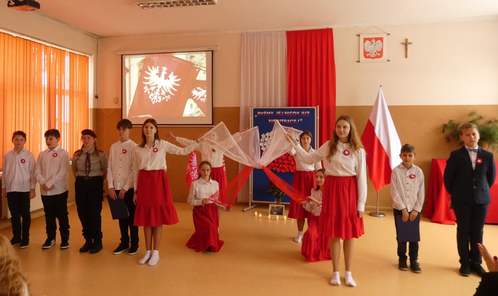 Następnie na zaproszonych gości czekała część artystyczna, w trakcie której szczególnie wyróżniał się fakt, iż w śpiewaniu hymnu narodowego, Roty i innych przygotowanych pieśni, energicznie brała udział cała społeczność szkolna.