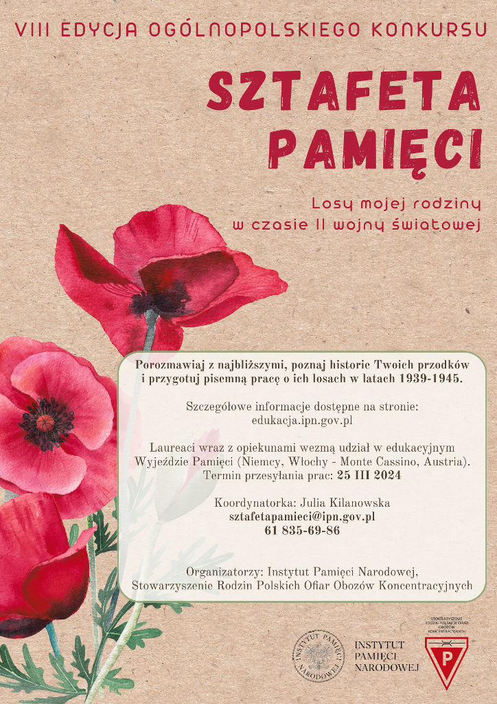 Zapraszamy do udziału w ogólnopolskim konkursie „Sztafeta Pamięci – losy mojej rodziny w czasie II wojny światowej”.