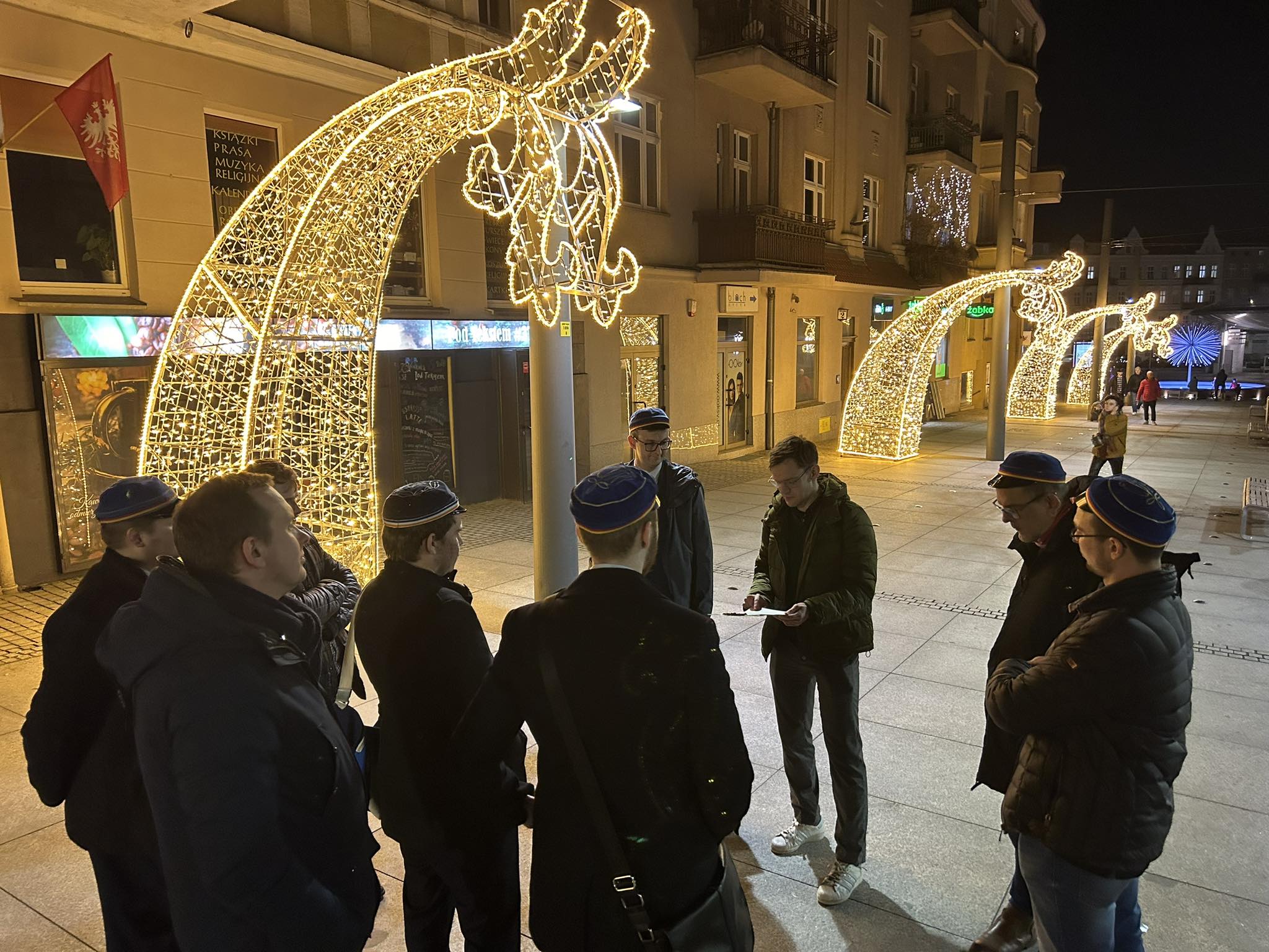 Spotkanie rozpoczęło się przed grotą maryjną położoną w bezpośrednim sąsiedztwie kościoła Matki Boskiej Bolesnej przy ul. Głogowskiej. Znajdują się tam trzy tablice upamiętniające zryw, z czego jedna (poświęcona gen. Józefowi Dowbor Muśnickiemu) jest ściśle związana ze środowiskiem korporacyjnym, ponieważ została ufundowana w 1985 r. przez członków Korporacji Akademickiej Lechia. Tam po złożeniu znicza, zaprezentowano sylwetkę pierwszego proboszcza łazarskiego, ks. Kazimierza Malińskiego, który jako członek „Komitetu dwudziestu pięciu” prowadził działania przygotowujące insurekcję, a także udostępniał pomieszczenia położonego obok kościoła domu św. Antoniego, w którym przechowywano broń i odbywały się szkolenia ochotników.