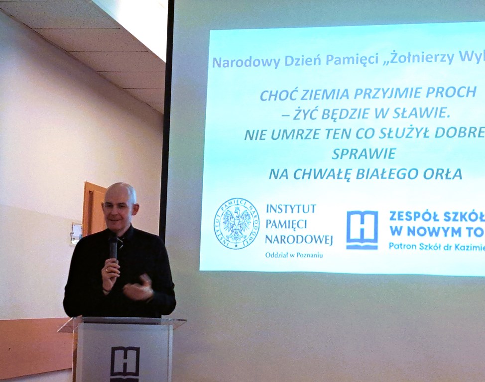 Uroczystość została zorganizowana przez dyrektor szkoły Marzenę Ginter. Swoją obecnością uświetnili ją m.in. dyrektor Powiatowego Centrum Usług Wspólnych Marek Nyćkowiak, dyrektor Miejskiej i Powiatowej Biblioteki Publicznej w Nowym Tomyślu Elżbieta Podlaszewska-Cybal, radny Rady Powiatu Nowotomyskiego Edwin Pigla i była dyrektor Zespołu Szkół nr 2 Elżbieta Helwing. Instytut Pamięci Narodowej reprezentował dyrektor dr hab. Rafał Reczek. Prelekcję na temat oddziałów podziemia antykomunistycznego działających w Nowym Tomyślu i okolicach w okresie powojennym wygłosił dr Zdzisław Kościański.