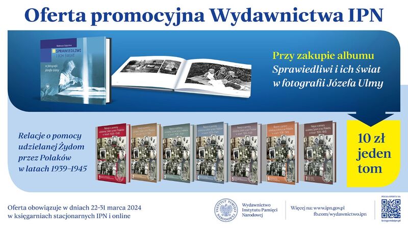 Kupując album Sprawiedliwi i ich świat w fotografii Józefa Ulmy, każdy tom publikacji Relacje o pomocy udzielanej Żydom przez Polaków w latach 1939–1945 można zakupić za 10 zł.