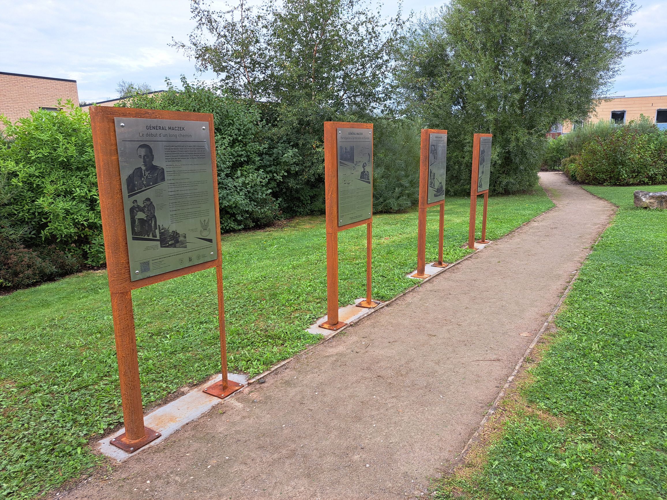 W trakcie uroczystości złożono kwiaty pod znajdującą się w parku im. gen. Stanisława Maczka pamiątkową stelą upamiętniającą żołnierzy 1 Dywizji Pancernej. Następnie odsłonięto 4 tablice informacyjne, poświęcone prezentacji kolei życia i dokonań Generała i jego żołnierzy oraz walkom Polaków na frontach II wojny światowej. Wspomniane tablice zostały przygotowane wspólnie przez: OBBH IPN w Poznaniu, miasto Zbąszyń oraz Fundację TRES. Ich dodatkową zaletą jest kod QR, który odsyła do francuskojęzycznej wersji wystawy o generale Maczku przygotowanej przez OBEN Katowice.