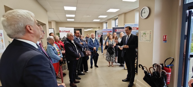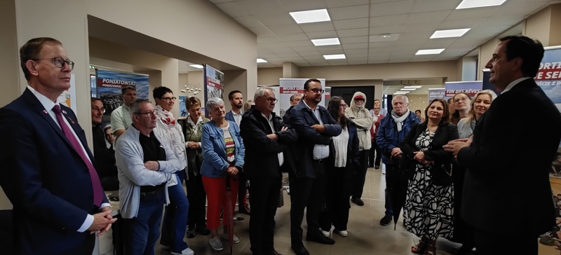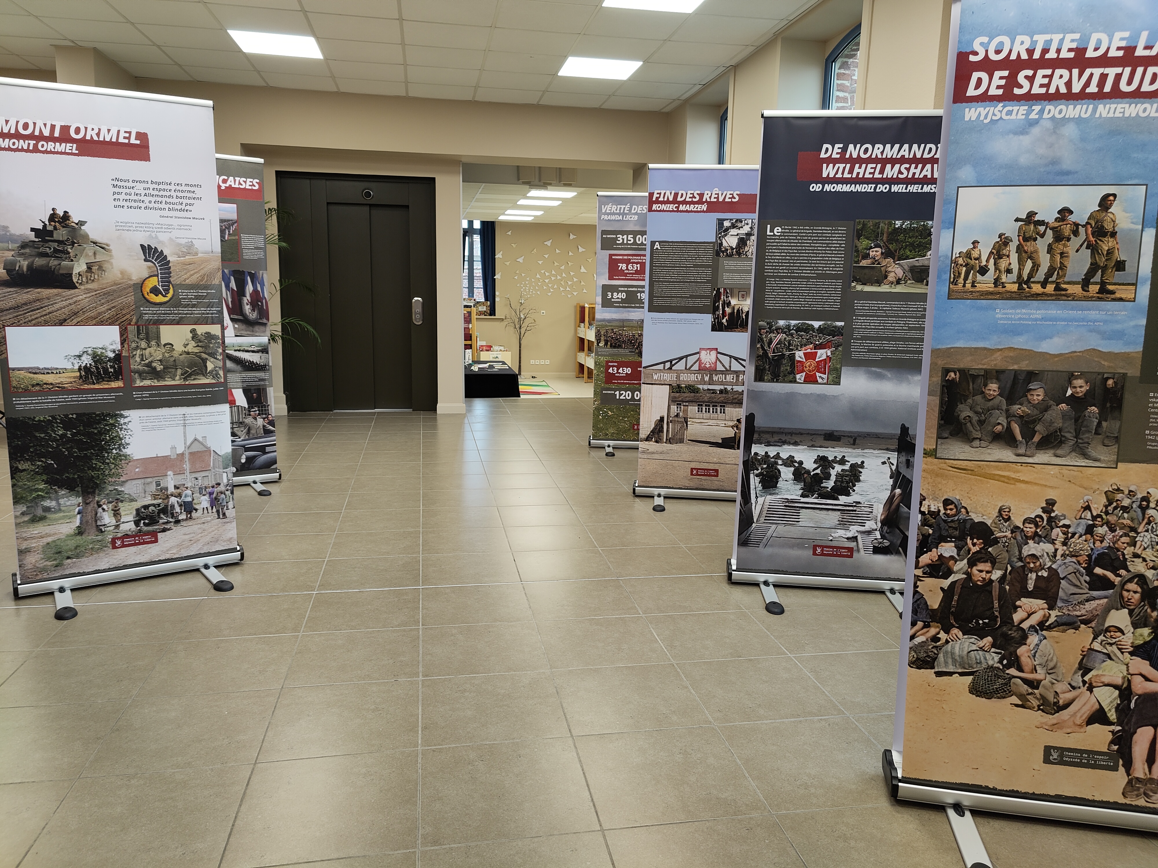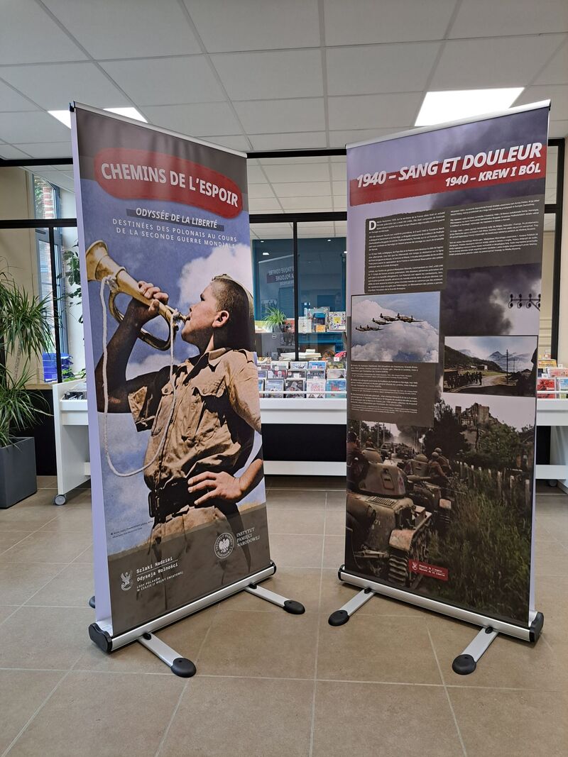 Kolejnym punktem obchodów było uroczyste otwarcie w budynku Mediateki (swego rodzaju Domu Kultury, będącego miejscem spotkań mieszkańców na niwie kulturalno-edukacyjnej) w Steenvoorde francuskojęzycznej wersji przygotowanej przez Instytut Pamięci Narodowej wystawy „Szlaki nadziei. Odyseja wolności”. Otwierając ekspozycję, naczelnik Konrad Białecki zapoznał zebranych z misją Instytutu oraz z historią powstania wystawy, a także z jej dotychczasową wędrówką po pięciu kontynentach. Podkreślił przy tym, jak wielką wagę IPN przywiązuje do krzewienia wiedzy o polskich bohaterach II wojny światowej poza granicami naszego kraju. Krótko omówił też szlaki, którymi podążali Polacy w latach 1939–1945 Wyraził też radość z licznej obecności przybyłych oraz z wielu deklaracji nauczycieli, którzy zapewniali, że pojawią się w najbliższych dniach w Mediatece wraz ze swymi uczniami, aby również im przybliżyć wyjątkowe losy polskich żołnierzy i cywilów podczas II wojny światowej. Następnie głos zabrał mer Steenvoorde Jean-Pierre Bataille, który złożył na ręce przedstawiciela IPN podziękowania dla Instytutu, podkreślając jak ważne dla lokalnej społeczności jest to, że ekspozycja została na francuskiej ziemi zaprezentowana po raz pierwszy w jego rodzinnym mieście. Zapewnił też, że pomoże w jej propagowaniu w innych miastach północnej Francji. Podobne zapewnienie złożyła Mandy Dorchies. Następnie naczelnik Konrad Białecki oprowadził mera i towarzyszących mu radnych po wystawie, odpowiadając przy tym na liczne pytania, dotyczące skomplikowanych losów polskich żołnierzy i ludności cywilnej w latach 1939–1945. Wystawa pozostanie w Steenvoorde do 20 września, następnie będzie prezentowana w innych miastach północnej Francji (jej kolejnym przystankiem będzie Lens). Pod koniec roku przewiduje się jej otwarcie w Paryżu.