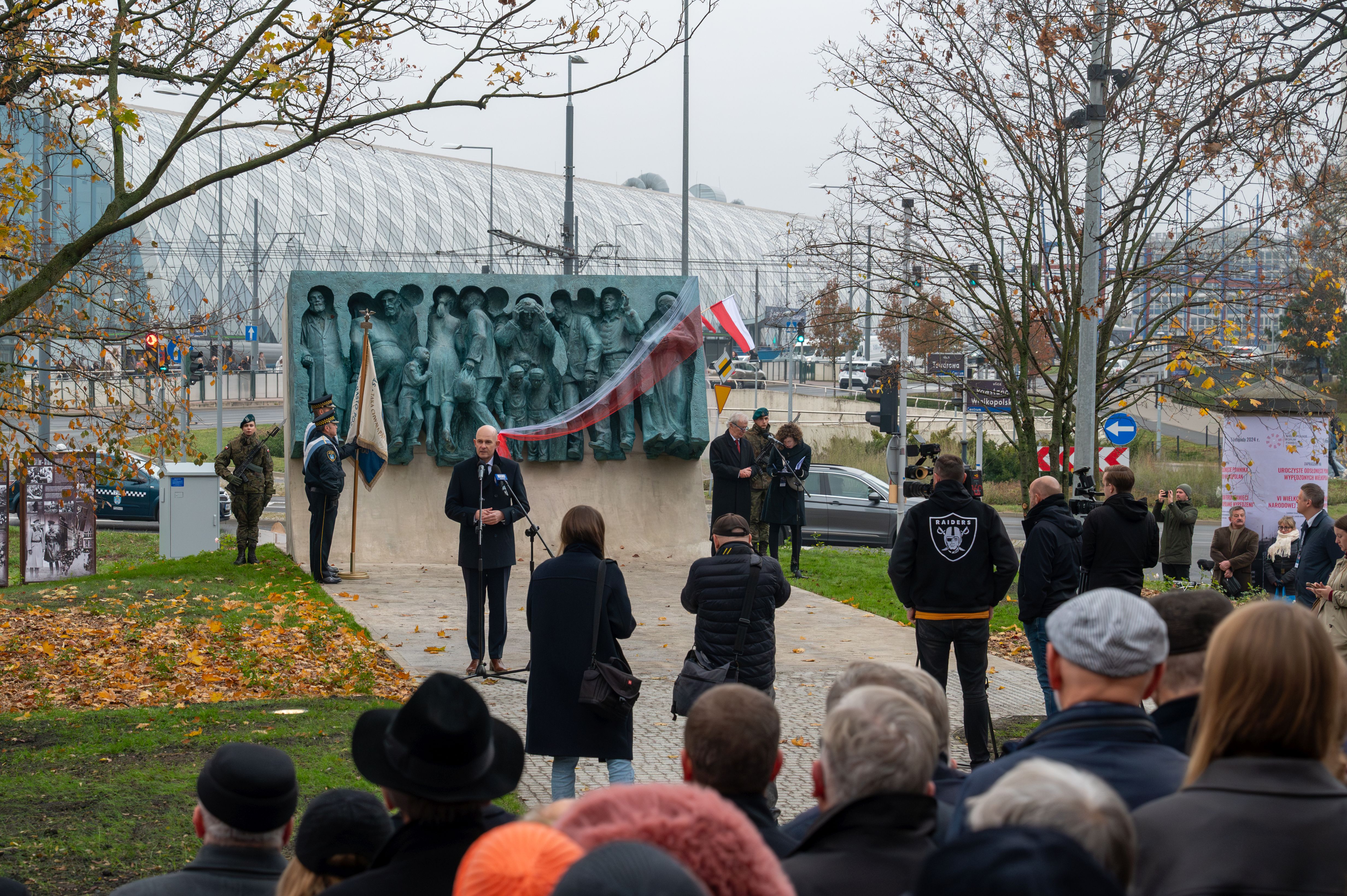 Pomnik został odsłonięty w 85. rocznicę pierwszych wysiedleń 5 listopada 2024 r. Podczas uroczystości głos zabrali: Aleksandra Wendland ze Stowarzyszenia Wspólnota Polaków Wypędzonych i Poszkodowanych przez Niemców 1939-1945, Prezydent Miasta Poznania Jacek Jaśkowiak i dyrektor poznańskiego oddziału IPN prof UAM dr hab. Rafał Reczek. Uroczystego odsłonięcia dokonali: Aleksandra Bendkowska reprezentująca Stowarzyszenie Społeczny Komitet Budowy Pomnika Wypędzonych w Poznaniu, Prezydent Miasta Poznania Jacek Jaśkowiak, Dyrektor Biura Upamiętniania Walk i Męczeństwa IPN Adam Siwek oraz rzeźbiarz Karol Badyna.