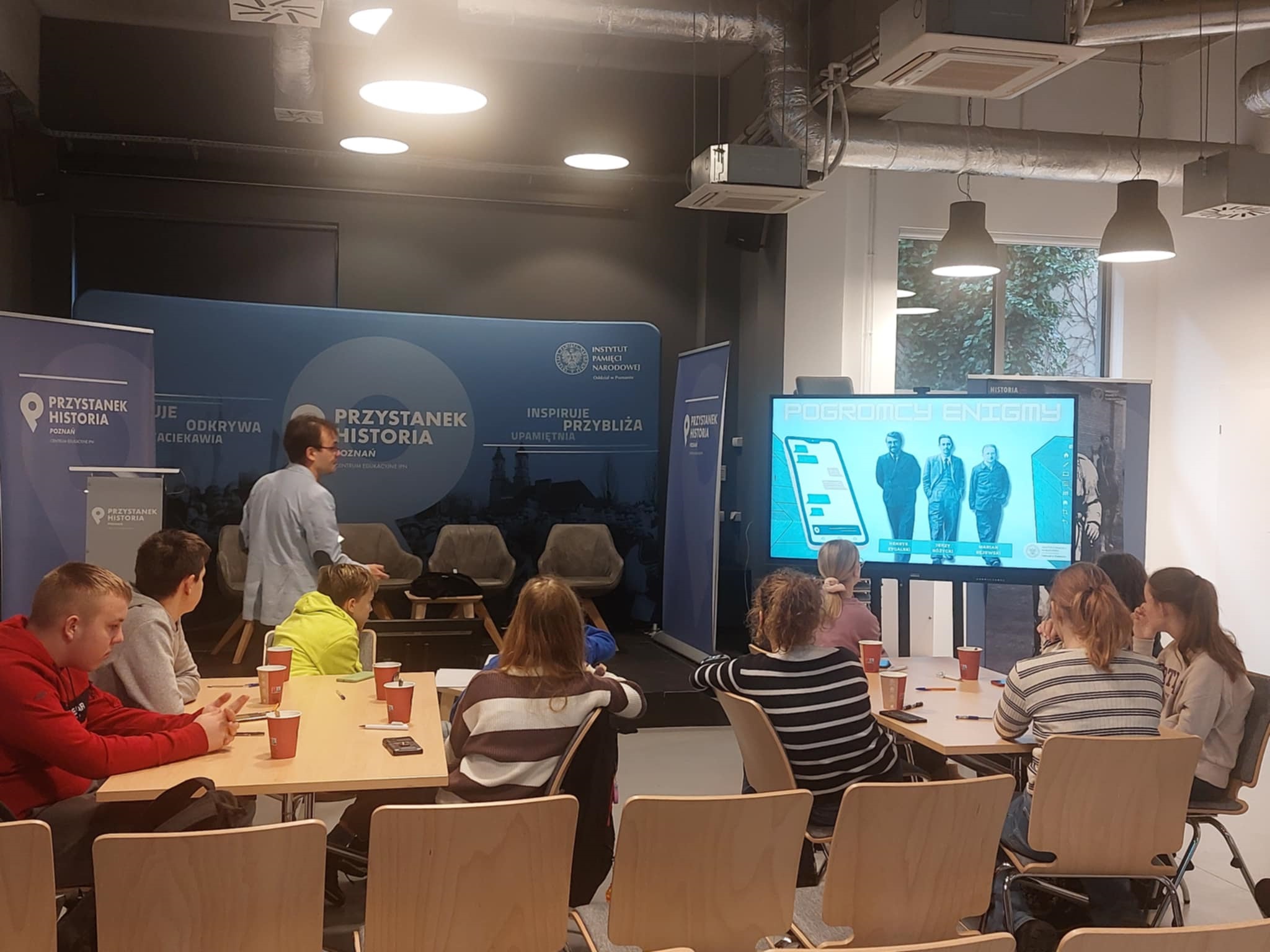 Następnie drużyna wraz z liderką udała się do Centrum Szyfrów Enigma. Zwiedzając ulicę św. Marcin, uczniowie wysłuchali krótkiego wykładu na temat Poznańskiego Czerwca 1956, Zamku Cesarskiego oraz historii budynku, w którym obecnie swoją siedzibę ma Centrum Szyfrów Enigma. Zwiedzanie nowoczesnego muzeum sprawiło młodzieży wielką radość.
