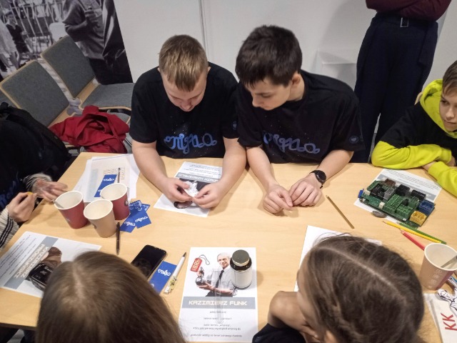 W pierwszej części spotkania odbyły się zajęcia „Skutecznie rozszyfrujmy historię XX wieku”, które przeprowadził Witold Sobócki. W czasie inspirujących zajęć młodzi pasjonaci historii poznali sylwetki słynnych matematyków, „pogromców Enigmy”, oraz dowiedzieli się wielu ciekawostek związanych z pracą polskich kryptologów. Przede wszystkim tego, że to dzięki dokonaniom polskich naukowców II wojna światowa trwała dwa lata krócej! Podsumowaniem zajęć było zadanie „Giganci nauki”: młodzież pracując w grupach, zapoznała się z życiorysami polskich naukowców, którzy niestety często są zapominani. Następnie uczniowie musieli odnaleźć w skrzyni przedmiot, który był związany z pracą danego badacza. W ten sposób dzieci poznały wiele osiągnieć zapomnianych polskich naukowców, takich jak Ludwik Hirszfeld (wprowadził oznaczenia grupy krwi), Kazimierz Funk (twórca nauk o witaminach i autor terminu „witamina”, który jako pierwszy wyodrębnił witaminę B1) czy Kazimierz Prószyński (twórca pierwszej ręcznej kamery filmowej).