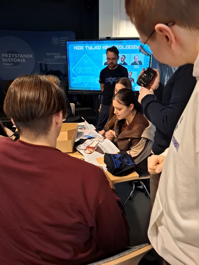 Zajęcia „Skutecznie rozszyfrujmy historię XX wieku” przeprowadził Witold Sobócki. W czasie inspirujących zajęć młodzi pasjonaci historii poznali sylwetki słynnych matematyków, „pogromców Enigmy” oraz dowiedzieli się wielu ciekawostek związanych z pracą polskich kryptologów. Przede wszystkim tego, że to dzięki dokonaniom polskich naukowców II wojna światowa trwała dwa lata krócej. Podsumowaniem zajęć było zadanie „Giganci nauki”: młodzież pracując w grupach zapoznała się z życiorysami polskich naukowców, którzy niestety często są zapominani. Następnie uczniowie musieli odnaleźć w skrzyni przedmiot, który był związany z pracą danego badacza. W ten sposób dzieci poznały wiele osiągnieć zapomnianych polskich naukowców, takich jak: Ludwik Hirszfeld (wprowadził oznaczenia grupy krwi), Kazimierz Funk (twórca nauk o witaminach i autor terminu „witamina”, jako pierwszy wyodrębnił witaminę B1) czy Kazimierz Prószyński (twórca pierwszej ręcznej kamery filmowej).