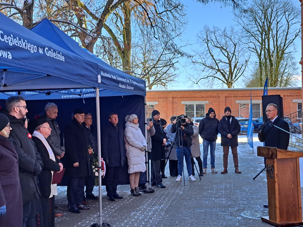 Po okolicznościowych przemówieniach organizatorów i fundatorów upamiętnienia, odsłonięcia tablicy dokonali: rektor Akademii Nauk Stosowanych prof. dr hab. Paweł Chęciński i dyrektor poznańskiego oddziału IPN prof. UAM dr hab. Rafał Reczek.