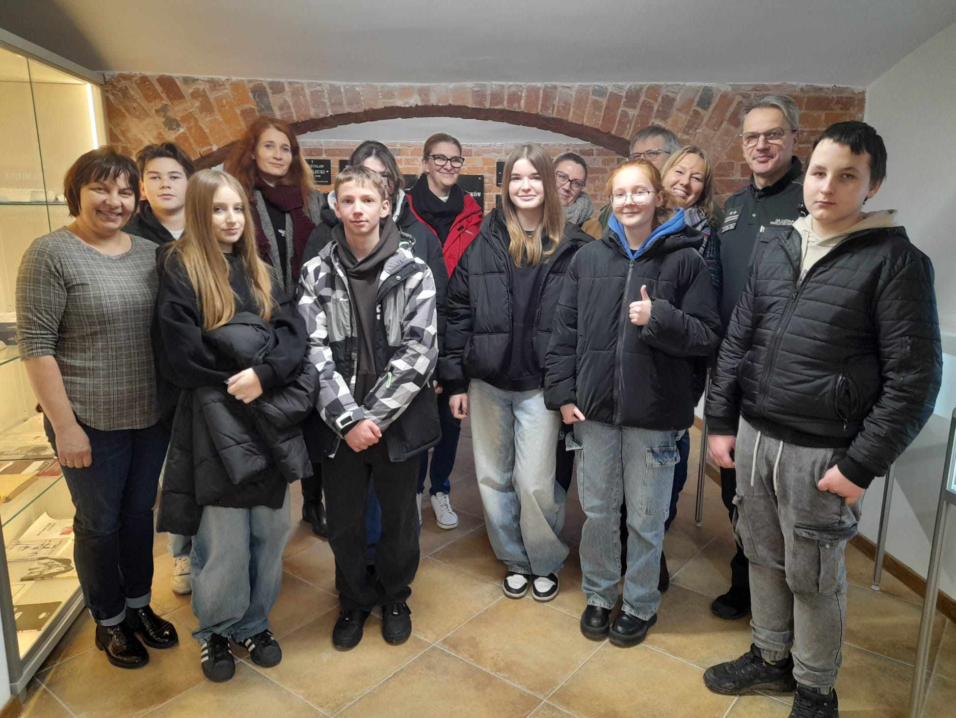 W środę 26 lutego 2025 r. uczestnicy VIII edycji projektu „Łączka i inne miejsca poszukiwań” wzięli udział w zajęciach terenowych. Była to wizyta w Zakładzie Karnym we Wronkach. Uczestnicy projektu – uczniowie klas 8 Szkoły Podstawowej w Bytyniu i Zespołu Szkolno-Przedszkolnego w Dopiewie, poznali historię wronieckiego więzienia. Dyrektor ppłk Zbigniew Konopacki oprowadził uczniów po izbie pamięci oraz przybliżył historię więźniów politycznych okresu stalinowskiego, a mjr Agata Nowak opowiedziała o codzienności za murami wronieckiego więzienia.