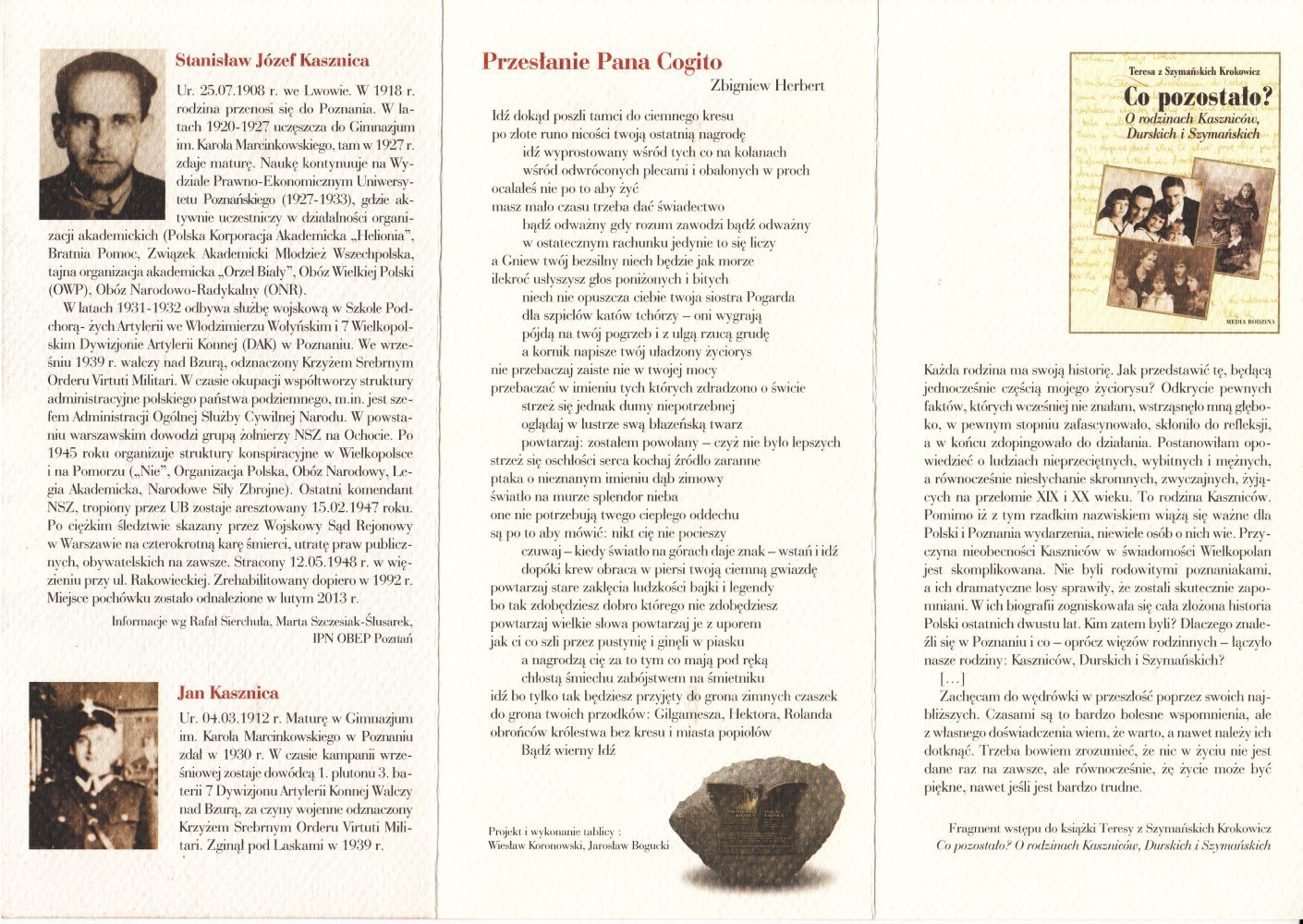 Uroczyste odsłonięcie tablicy pamiątkowej poświęconej Obrońcom Rzeczpospolitej Stanisławowi Józefowi i Janowi Kasznicom („Marcinek”, ul.Bukowska 16)