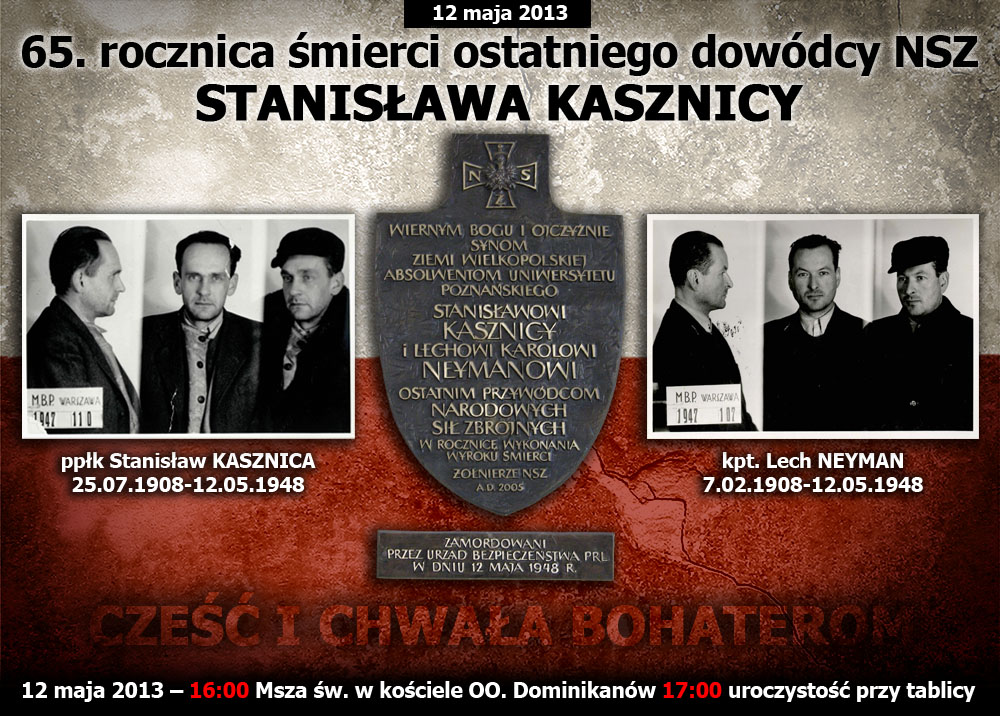 11 i 12 maja 2013 r. odbyły się w Poznaniu uroczystości w 65. rocznicę stracenia Stanisława Kasznicy i Lecha Neymana.