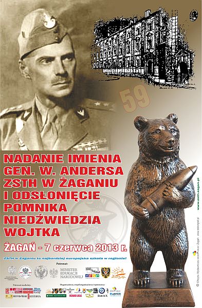 7 czerwca 2013 w Zespole Szkół Tekstylno-Handlowych w Żaganiu odbędzie się niezwykła gala nadania szkole imienia gen. Władysława Andersa i odsłonięcia pierwszego w Polsce pomnika niedźwiedzia Wojtka, żołnierza 2 Korpusu Polskiego.