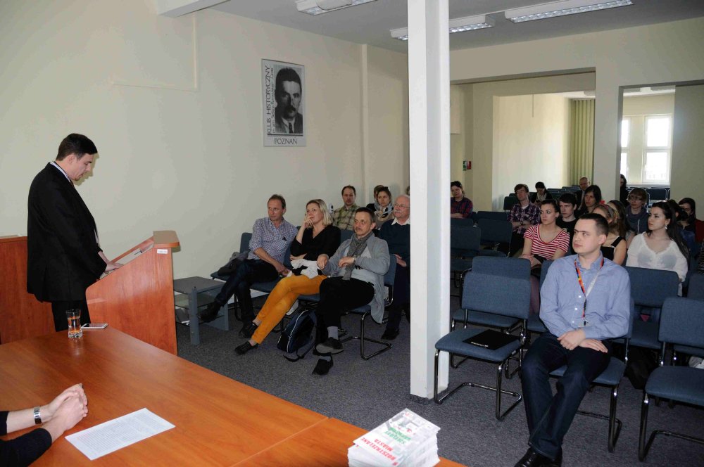 W piątek 21 marca 2014 r. w siedzibie Oddziału IPN w Poznaniu gościliśmy 45 studentów z opiekunami, pochodzących z Niemiec, Szwecji, Austrii, Belgii i Polski, przebywających na Wydziale Nauk Politycznych i Dziennikarstwa UAM w Poznaniu w ramach programu IP Erasmus. Motywem przewodnim pobytu młodzieży w Polsce jest ukazanie procesu legitymizacji władzy.