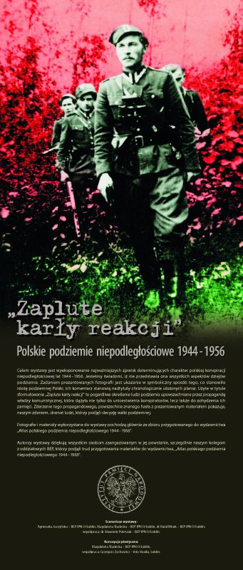 Wystawa przedstawia wiele aspektów dziejów podziemia niepodległościowego w latach 1944–1956. Użyte w tytule sformułowanie „zaplute karły reakcji" to pogardliwe określenie ludzi powojennego podziemia, upowszechniane przez propagandę komunistyczną, mające doprowadzić do zohydzenia ich pamięci. Zderzenie tego propagandowego hasła z prezentowanym na panelach wystawienniczych materiałem dodatkowo podkreśla dramat ludzi, którzy podjęli decyzję dalszej walki podziemnej. Widzimy w pigułce całą historię podziemia niepodległościowego, od jego dramatycznego początku związanego jeszcze z okresem wyzwalania spod okupacji niemieckiej po często beznadziejną walkę z narzuconym ze wschodu reżimem.
