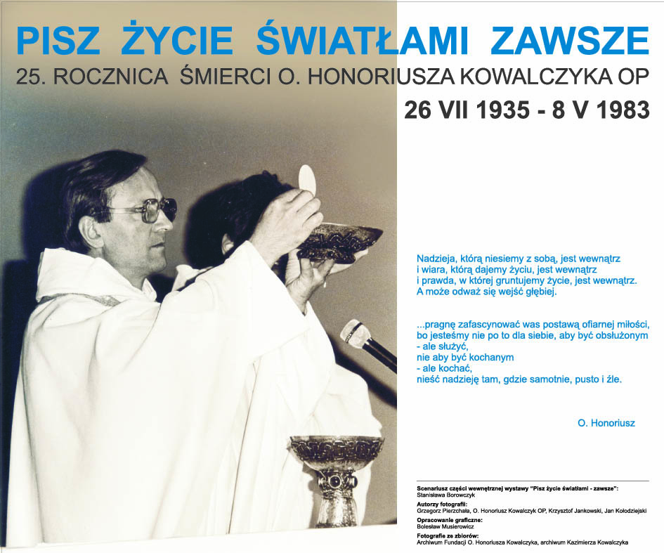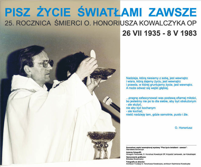 Każda z wystaw składa się z 26 plansz. Pierwsza przedstawia życie i działalność o. Honoriusza Kowalczyka OP (1935–1983), duszpasterza środowiska akademickiego, w czasie stanu wojennego nieformalnego duszpasterza Solidarności. Druga wystawa, otaczająca z zewnątrz wystawę o ojcu Honoriuszu, przedstawia w obrazowy sposób najważniejsze wydarzenia z okresu 1939–1984, umieszczając życie o. Honoriusza w ich kontekście.