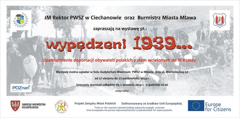 W dniach 1–3 października 2014 r. odbyła się w Mławie prezentacja Wystawy Związku Miast Polskich „Wypędzeni 1939..." autorstwa Jacka Kubiaka, Małgorzaty Schmidt i Janusza Zemera dla uczniów szkół mławskich. Po wystawie oprowadzał kurator Jacek Kubiak. Wzięło udział 586 uczniów z Gimnazjum nr 1 im. Mikołaja Kopernika, Zespołów Szkół nr 1, nr 2 i nr 4, Akademickiego Centrum Kształcenia przy Państwowej Wyższej Szkole Zawodowej, I LO im. Stanisława Wyspiańskiego oraz Ogólnokształcącego Liceum Katolickiego w Mławie.
