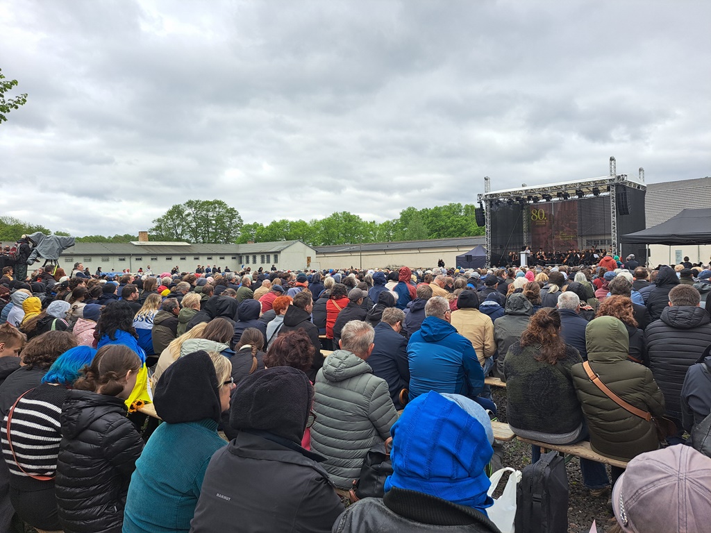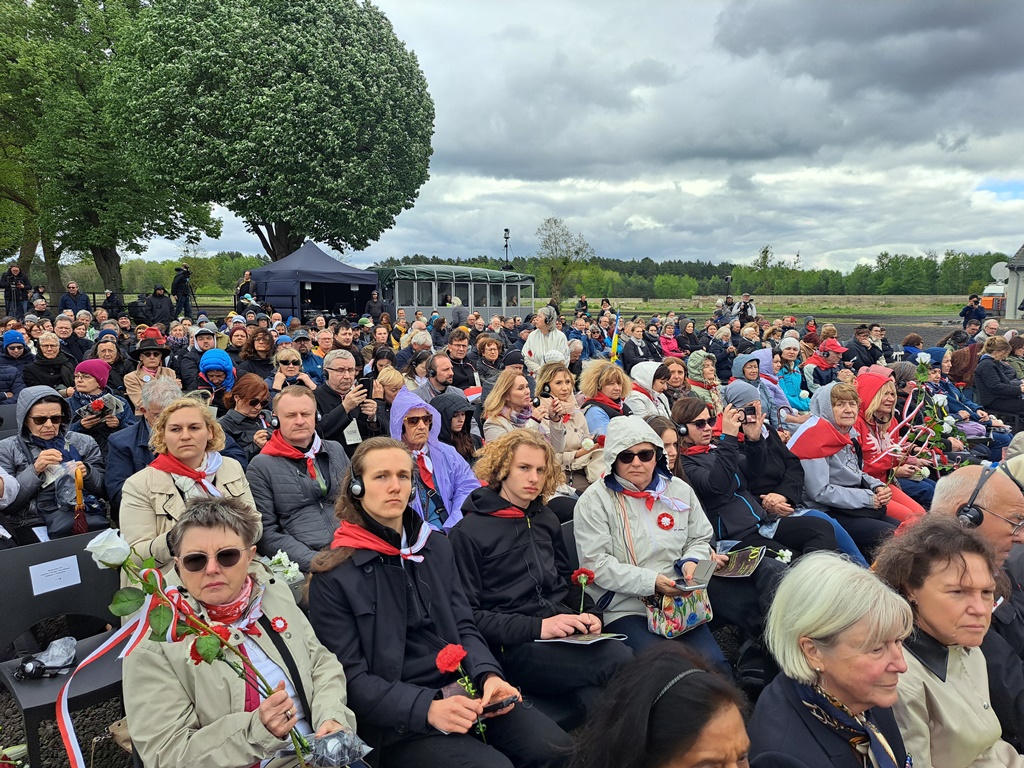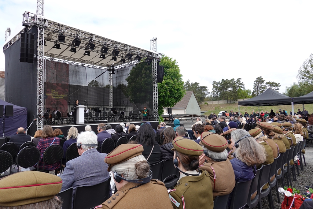 Uczestnicy wyjazdu wzięli udział w głównych uroczystościach wyzwolenia obozu, które odbyły się na byłym placu apelowym FKL Ravensbrück. W wydarzeniu wzięli udział wysocy przedstawiciele władz niemieckich na czele z Claudią Roth, minister stanu, pełnomocniczką rządu RFN ds. kultury i mediów oraz delegacje narodowe z całej Europy. Polskę reprezentowała m.in. Hanna Wróblewska, minister kultury i dziedzictwa narodowego oraz dr Mateusz Szpytma, zastępca prezesa Instytutu Pamięci Narodowej. Podczas uroczystości nie zabrakło polskich akcentów i świadectw dotyczących martyrologii polskich więźniarek FKL Ravensbrück. Najbardziej przejmującym momentem wydarzenia było osobiste świadectwo Ingelore Prochnow, córki młodej Niemki i polskiego robotnika przymusowego. Niemka została za związek z Polakiem uwięziona w FKL Ravensbrück. Tam urodziła się pani Prochnow. Podzieliła się ona przejmującym świadectwem związanym z konsekwencjami pobytu w obozie, porzuceniem po wojnie przez matkę oraz traumą, jaką pobyt w obozach koncentracyjnych zostawia na całe życie, a także ma wpływ na dalsze pokolenia. Warto dodać, że Pani Ingelore nigdy nie poznała swojego ojca, który za związek z młodą Niemką również trafił do obozów koncentracyjnych. Zmarł w 1997 r., nie wiedząc, że ma córkę. Trauma pokoleniowa i jej zrozumienie to bardzo ważny aspekt, na który zwracają uwagę organizatorzy Wyjazdów Pamięci, podróżując do Miejsc Pamięci z rodzinami polskich więźniów i ofiar obozów koncentracyjnych.