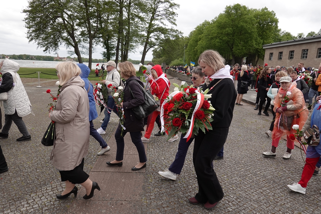 Po głównych uroczystościach uczestnicy przeszli w pochodzie pod pomnik „Niosąca” nad jeziorem Schwedt i wspólnie z delegacjami z całego świata złożyli kwiaty. Członkowie polskiej delegacji zgodnie z obowiązującym zwyczajem wrzucili do jeziora Schwedt przywiezione z Polski białe i czerwone kwiaty. Ten symboliczny gest ma upamiętniać wszystkie zamordowane więźniarki, których prochy zostały przez Niemców wrzucone do tego jeziora. Następnie wiązanki zostały złożone pod polską tablicą umieszczoną na „Murze Narodów” na terenie b. FKL Ravensbrück. Jest to oryginalny 4-metrowej wysokości ceglany mur, który otaczał obóz w okresie jego funkcjonowania.