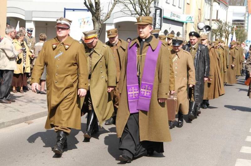 Blisko 100 rekonstruktorów z całej Polski w historycznych mundurach zainscenizowało ostatni etap Golgoty Wschodu. Marsz ruszył o godz. 12.00 spod cmentarza parafialnego na sygnał syren alarmowych włączonych w całym mieście. Przeszli w nim ci, którzy w ciszy i skupieniu chcieli oddać hołd Ofiarom tej straszliwej zbrodni. Część osób wzięła udział we mszy w intencji pomordowanych i ich rodzin w kościele farnym, podczas której wspominano heroiczną postawę 24 księży kapelanów Wojska Polskiego zamordowanych w Katyniu, Charkowie i Kalininie wiosną 1940 roku.