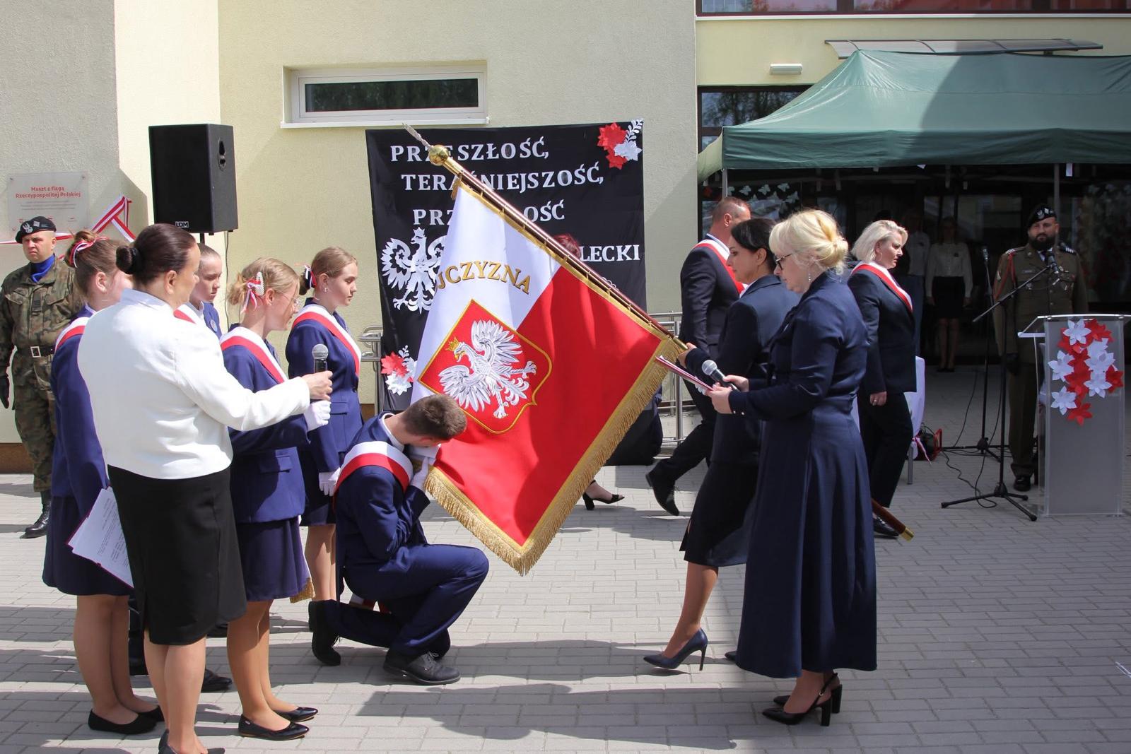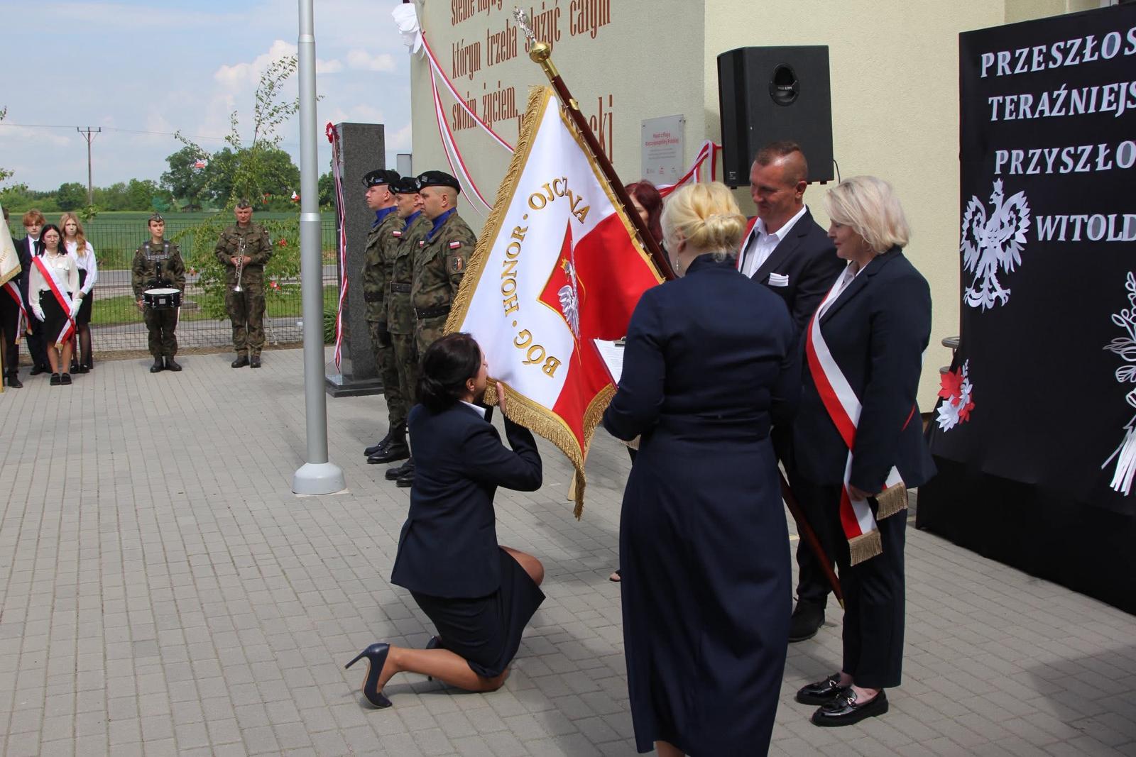 W części oficjalnej głos zabrali przedstawiciele samorządu, muzeum oraz Instytutu Pamięci Narodowej. Dyrektor szkoły podziękowała wszystkim darczyńcom, którzy swoim wsparciem finansowym i moralnym przyczynili się do przygotowania uroczystości. W części artystycznej uczniowie szkoły wykonali pieśni patriotyczne, recytowali utwory poświęcone Witoldowi Pileckiemu, a laureatka konkursu literackiego „List do Patrona” odczytała swój list.