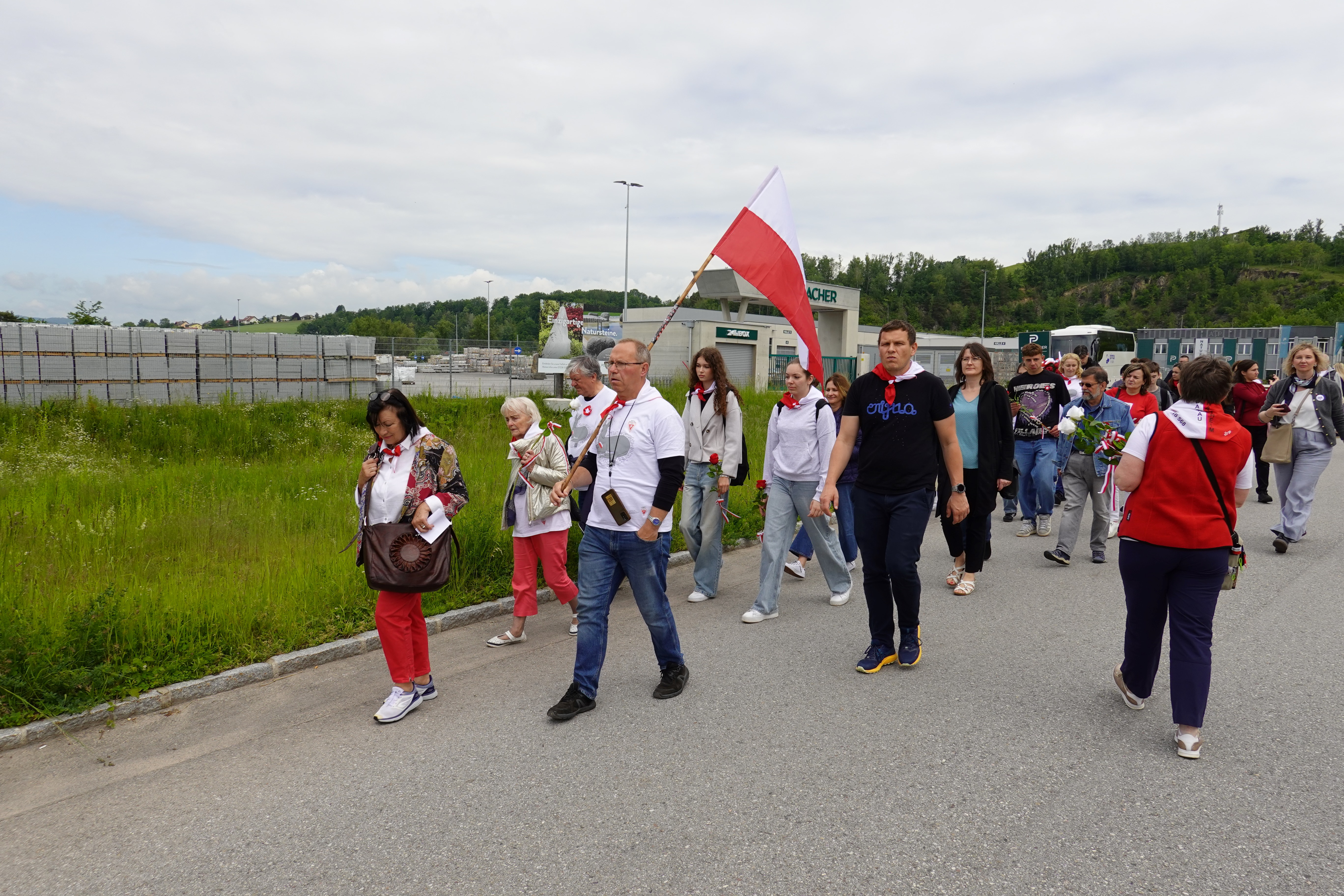 W tym roku mieliśmy również okazję wejść na plac apelowy byłego obozu koncentracyjnego Gusen, na którym Pani Marta Gammer opowiedziała historię tego obozu. Wcześniej nie było to możliwe. To bardzo pozytywna zmiana w podejściu do tematu KL Gusen przez stronę austriacką. Po terenie byłego obozu oprowadzał uczestników pracownik Oddziałowego Biura Edukacji Narodowej IPN w Poznaniu Tomasz Cieślak.