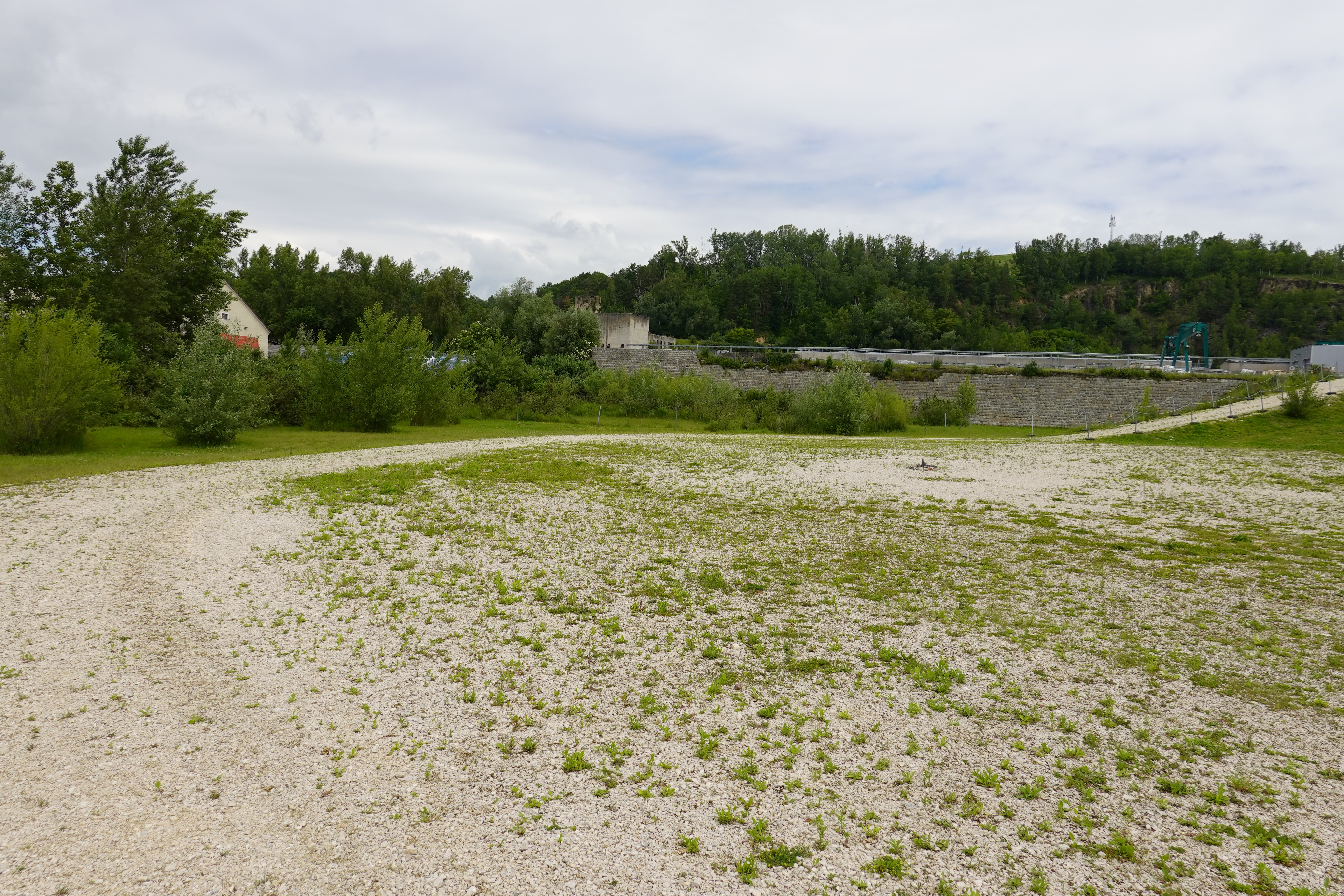 Teren byłego placu apelowego w KL Gusen. Widok na pozostałości muru oporowego KL Gusen. Stan obecny. Fot. Tomasz Cieślak (IPN) -