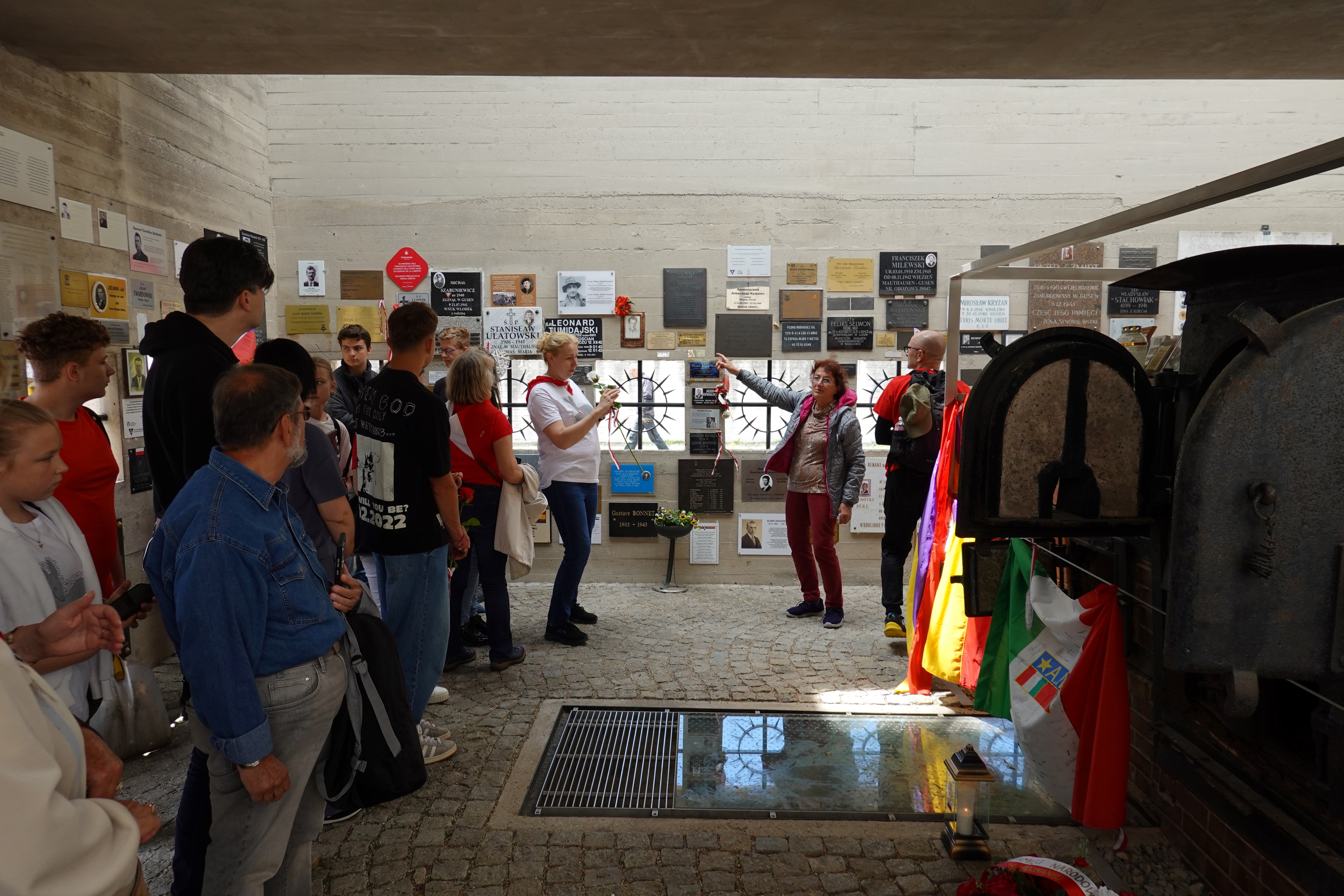 W zwartej grupie dotarliśmy do Memoriału Gusen, gdzie pod krematorium rodziny więźniów KL Gusen mogły złożyć kwiaty i upamiętnić swoich bliskich. Po emocjonującej wizycie, grupa udała się na zwiedzanie wystawy stałej Memoriału Gusen, opowiadającej o historii tego miejsca. Podczas jej zwiedzania główną uwagę zwracały przerażające fotografie z wyzwolenia w maju 1945 r. obozu przez wojska amerykańskie. Wizyta w Memoriale była okazją do zadumy i refleksji, ale również do analizy sposobu prezentacji tej trudnej tematyki przez Austriaków.
