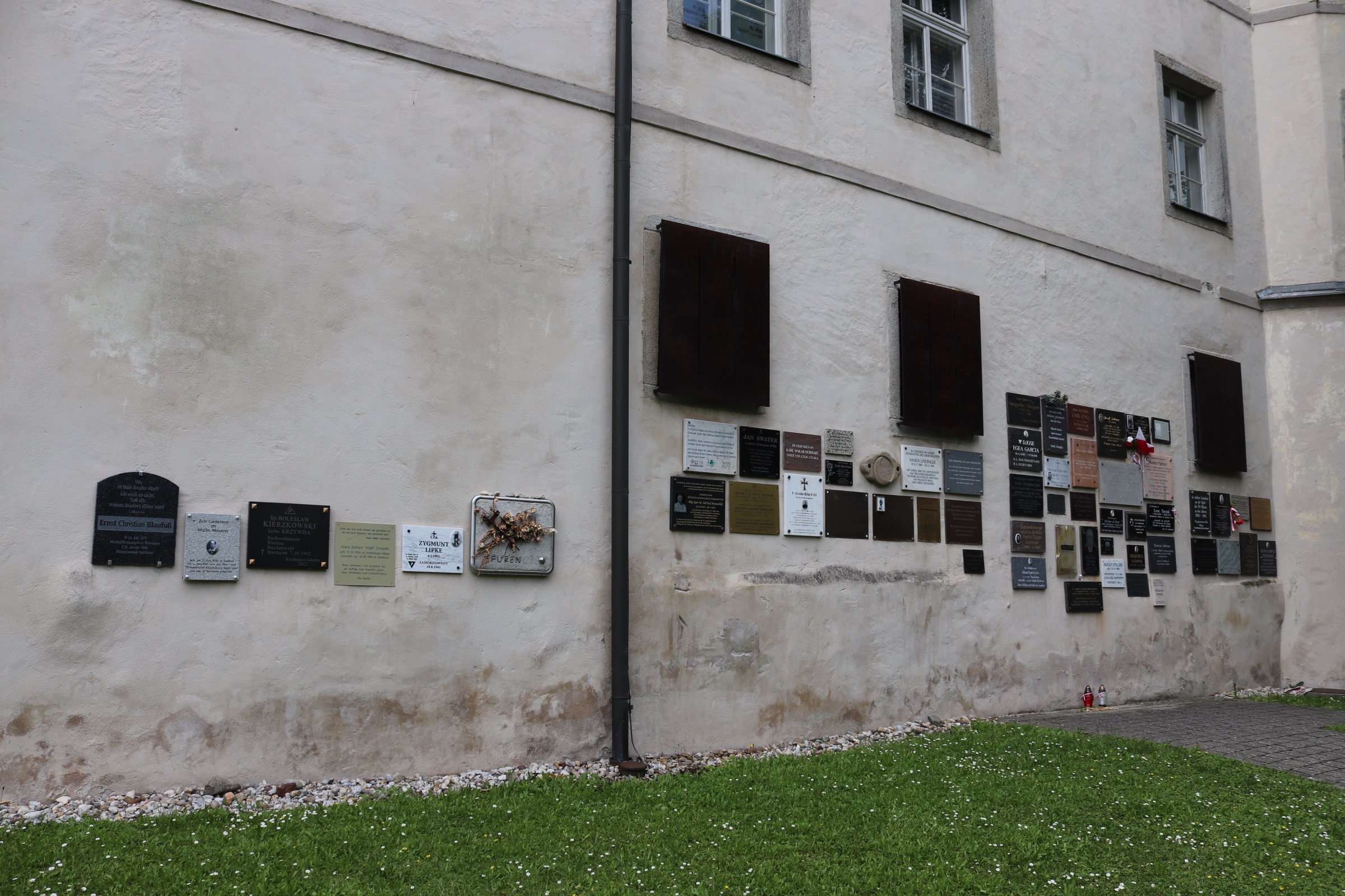 Tablice epitafijne na ścianie Zamku Hartheim. Fot. Tomasz Cieślak (IPN) -