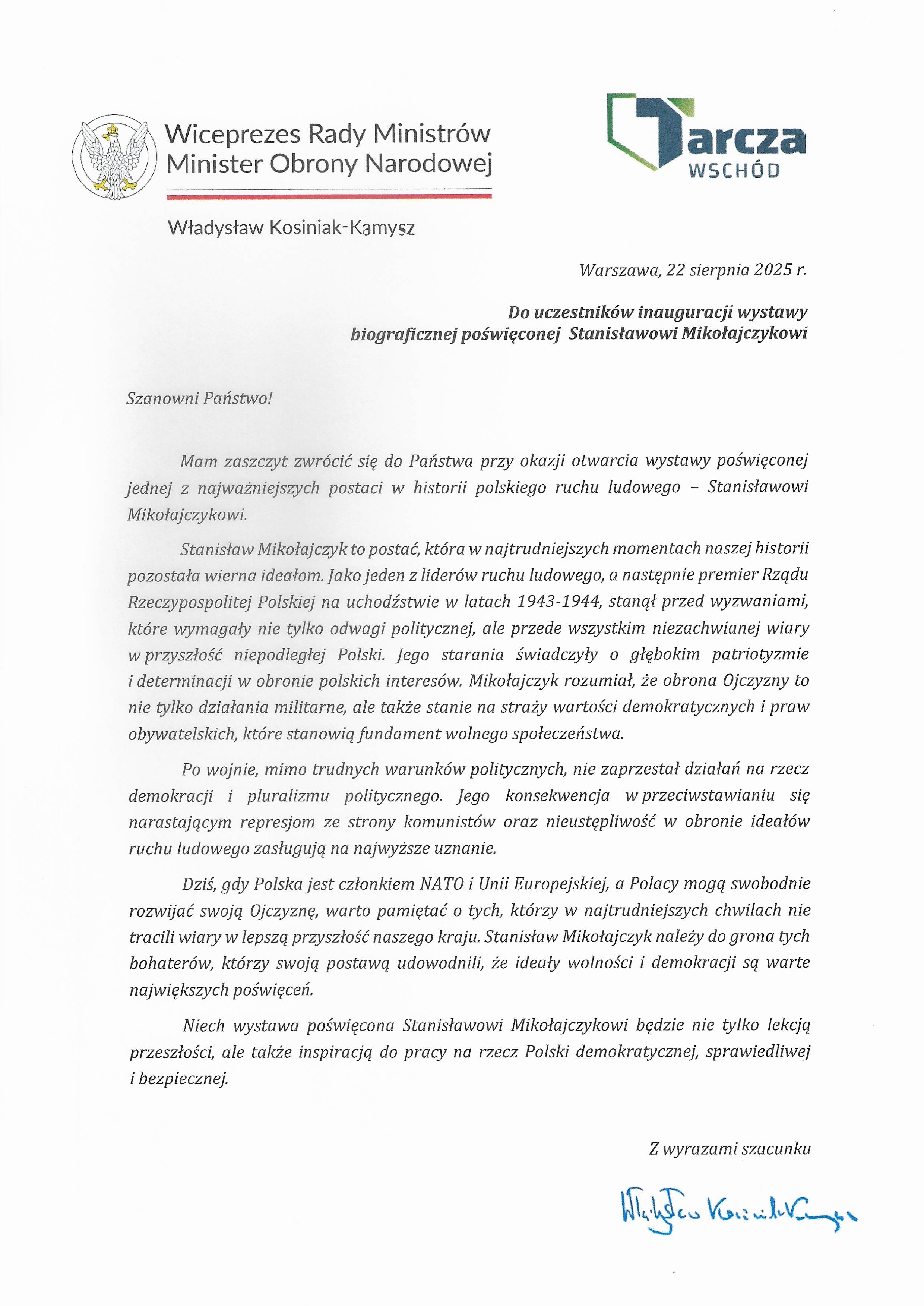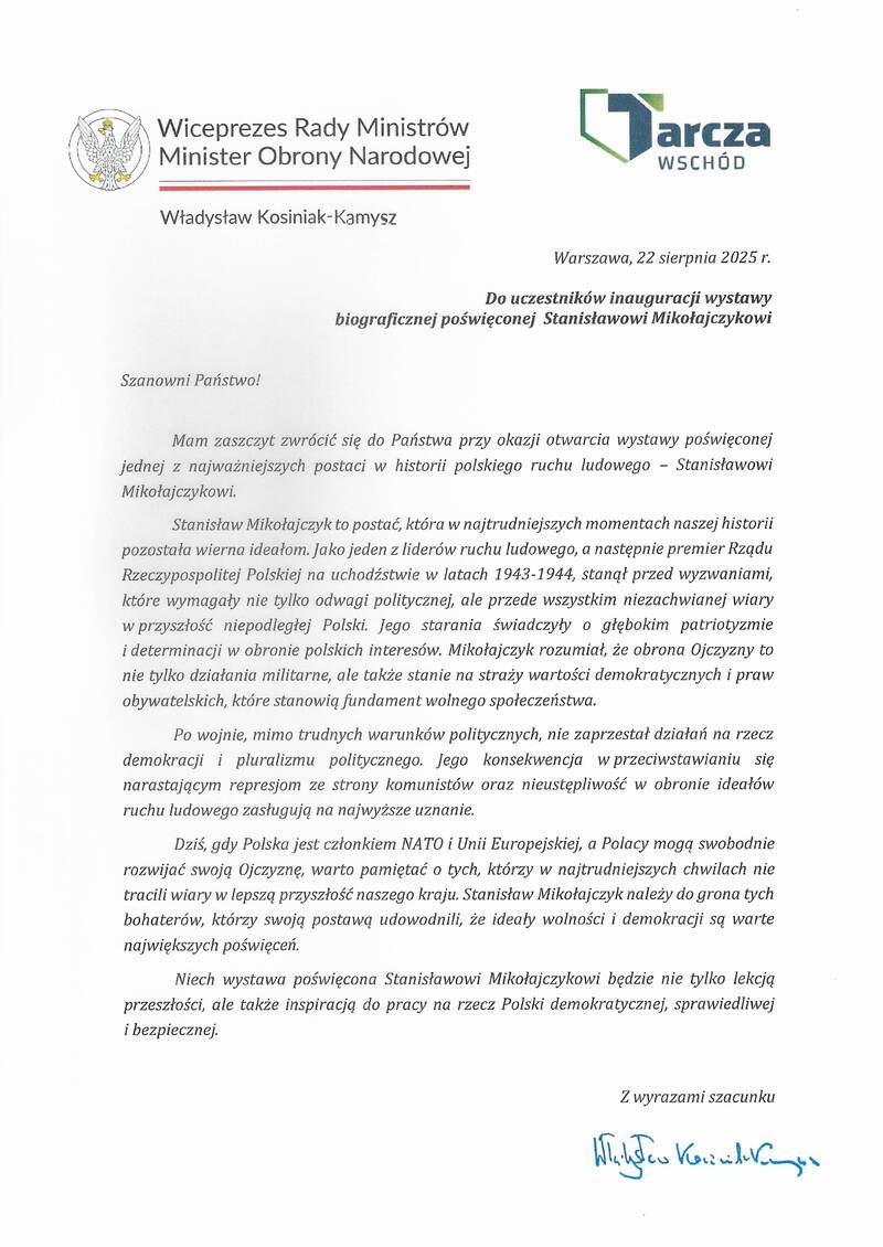 Spotykamy się z okazji 80. rocznicy wymuszonego przemianowania Stronnictwa Ludowego na Polskie Stronnictwo Ludowe, ponieważ komuniści tak jak ukradli Polskę, tak chcieli ukraść ruch ludowy, nawet jego nazwę. Nastały dwa trudne lata i sam Stanisław Mikołajczyk musiał uciekać, zagrożony śmiercią. Wyjechał i żyjąc na obczyźnie, otwierał oczy Zachodu na to, czym jest komunizm. Teraz, w rodzinnym mieście Stanisława Mikołajczyka, dziękujemy wszystkim, którzy dbali o jego pamięć. Instytut Pamięci Narodowej, który powstał w tym samym roku, w którym zostały sprowadzone szczątki Stanisława Mikołajczyka do Polski, także o ruchu ludowym i Stanisławie Mikołajczyku pamięta. Wszystkich zainteresowanych odsyłam do monumentalnej publikacji źródłowej „Stanisław Mokołajczyk w dokumentach aparatu bezpieczeństwa”.