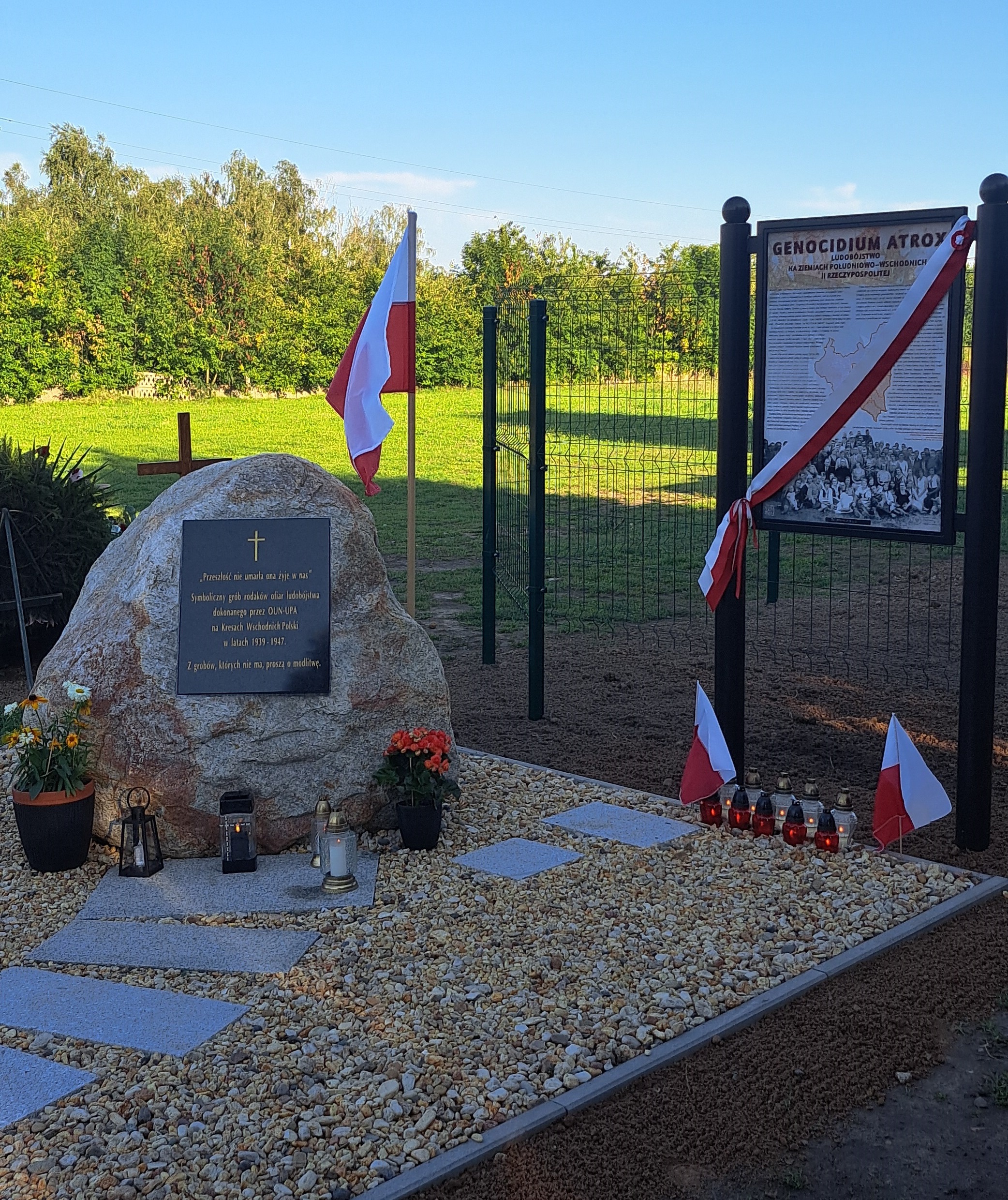 Organizatorzy uroczystości, rodowici kresowianie – państwo Jan i Krystyna Winiarz – zainicjowali powstanie przy tablicy cenotafu, symbolicznego grobowca upamiętniającego ofiary zbrodni wołyńskiej, które do dziś nie doczekały się ekshumacji, identyfikacji i finalnie godnego pochówku: „Z grobów, których nie ma, proszą o modlitwę”. Tablicę odsłonili wspólnie naczelnik Oddziałowego Biura Upamiętniania Walk i Męczeństwa IPN w Poznaniu Wojciech Chałupka i Pani Krystyna Winiarz. Złożono również wiązanki kwiatów i znicze przy cenotafie. Modlitwę w intencji polskich ofiar zbrodni wołyńskiej odmówił paulin o. Paweł z parafii pw. św. Marcina i Wincentego w Skórzewie. W odsłonięciu uczestniczyli również przedstawiciele Akcji Katolickiej oraz rodzin ofiar.