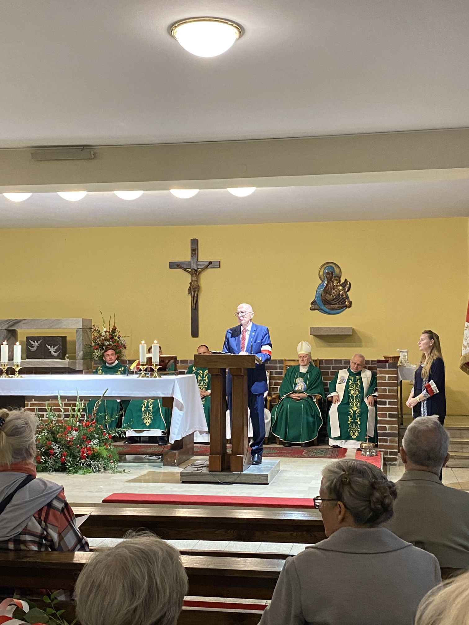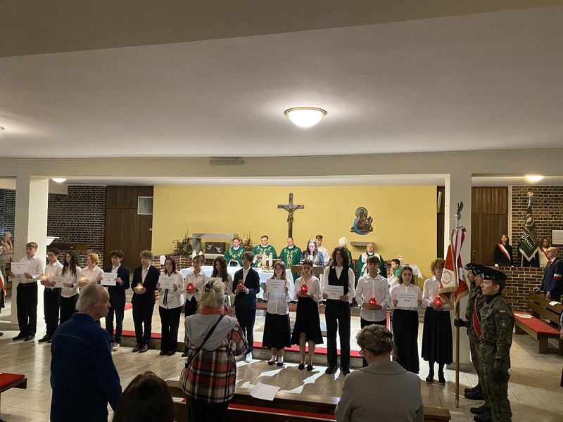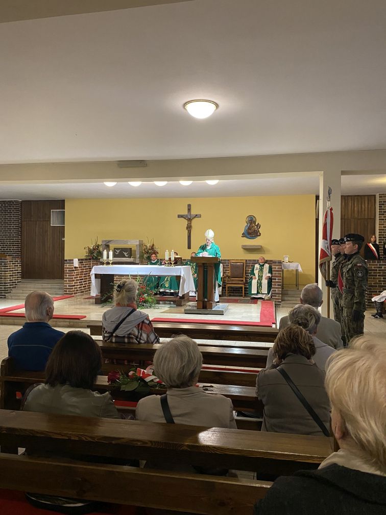 Obchody rozpoczęto odśpiewaniem „Mazurka Dąbrowskiego” oraz mszą świętą. Liturgii przewodniczył i homilię wygłosił ksiądz biskup Grzegorz Balcerek, biskup pomocniczy poznański. Wszystkich zgromadzonych powitał gospodarz miejsca, ksiądz Marcin Kubiak, proboszcz parafii pw. św. Jana Kantego.