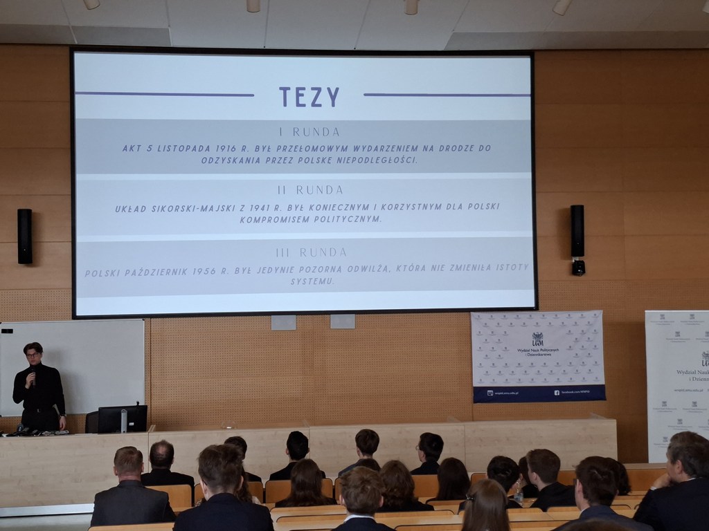 Uczestników debat powitali przedstawiciele organizatorów turnieju: prodziekan Wydziału Nauk Politycznych i Dziennikarstwa UAM dr Artur Pohl oraz dyrektor Instytutu Pamięci Narodowej Oddział w Poznaniu prof. UAM dr hab. Rafał Reczek.