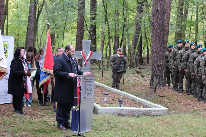Podczas oficjalnej części uroczystości głos zabrali: prezes Stowarzyszenia Miłośników Dopiewca „Sami Swoi” Zofia Dobrowolska, w imieniu Prezydenta RP dr. Karola Nawrockiego – Piotr Głowacki, doradca Prezydenta RP, w imieniu Wojewody Wielkopolskiej Agaty Sobczyk – Bartosz Biegała, Kierownik Oddziału Organizacyjnego i Ochrony Dziedzictwa Narodowego Wydziału Polityki Społecznej, w imieniu Dyrektora Instytutu Pamięci Narodowej w Poznaniu prof. UAM dr. hab. Rafała Reczka – Marta Szczesiak-Ślusarek, Naczelnik Oddziałowego Biura Edukacji Narodowej IPN w Poznaniu, w imieniu wójta Gminy Dopiewo Sławomira Sobczaka – Aleksandra Rutyna, zastępczyni Wójta Gminy Dopiewo oraz Tomasz Cieślak z Oddziałowego Biura Edukacji Narodowej IPN w Poznaniu. Podczas uroczystości Piotr Głowacki przekazał w imieniu Prezydenta RP dr. Karola Nawrockiego na ręce Zofii Dobrowolskiej flagę Rzeczypospolitej Polskiej. Odczytany został także Apel Pamięci, a kompania reprezentacyjna oddała trzy salwy honorowe. Na zakończenie uroczystości oficjalne delegacje oraz zaproszeni goście złożyli przy pomniku kwiaty i zapalili znicze.