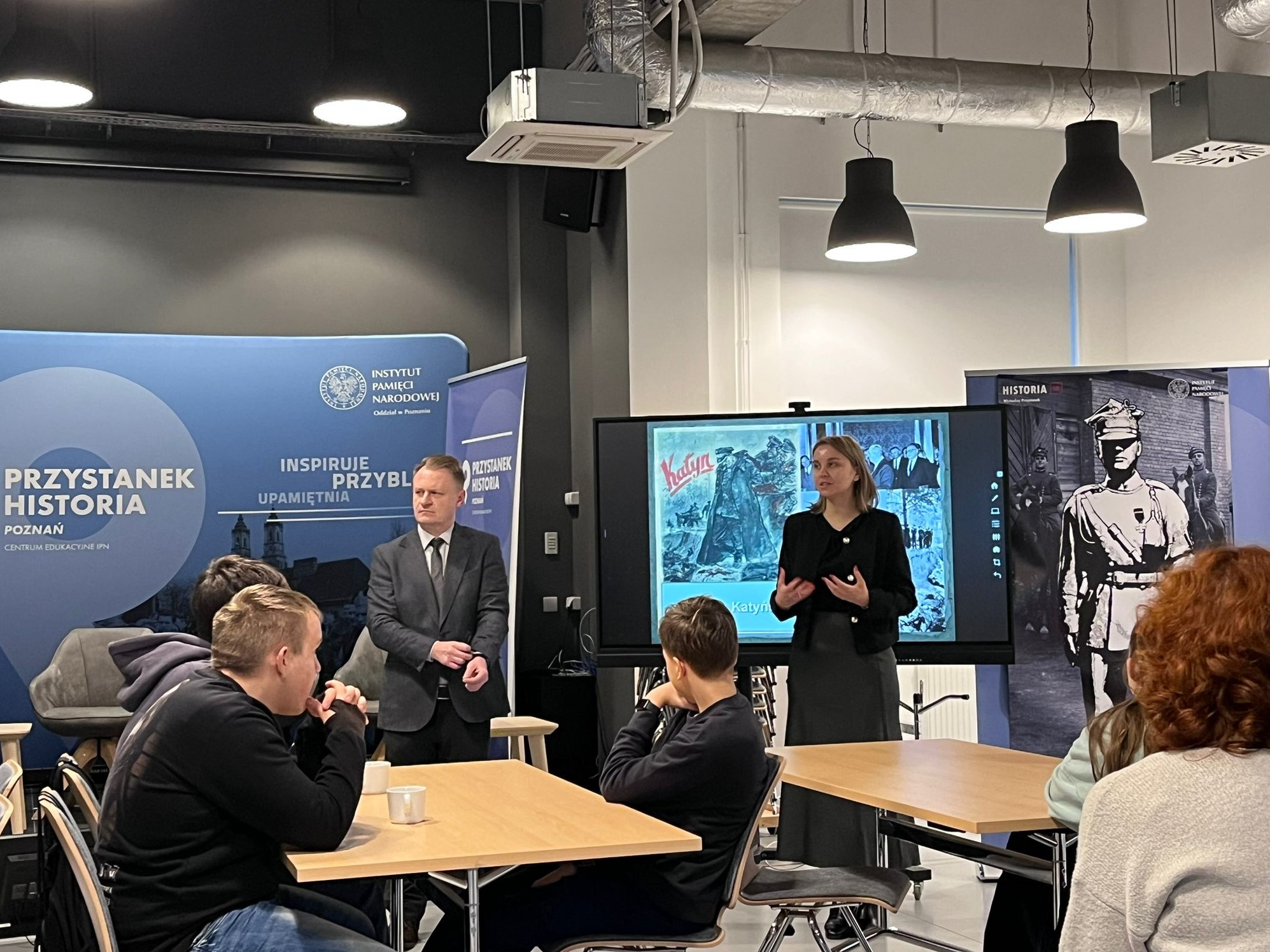 20 i 21 listopada 2025 r. w Przystanku Historia IPN w Poznaniu odbyły się pierwsze warsztaty w ramach konkursu „Silni Polską!”. Zajęcia przeprowadzili pracownicy Oddziałowego Biura Edukacji Narodowej IPN w Poznaniu: Julia Moszczyńska, Marcin Podemski, Agnieszka Kubiak oraz Witold Sobócki. Uczniowie z Grodziska Wielkopolskiego i Konina wzięli udział w dwóch warsztatach: „Giganci Nauki” oraz „Śledztwo katyńskie”.