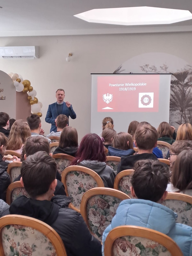 Podczas wykładu uczestnicy zapoznali się z najważniejszymi faktami dotyczącymi Powstania Wielkopolskiego 1918-1919 oraz z postacią gen. Józefa Dowbora Muśnickiego – drugiego dowódcy powstania i organizatora Wojsk Wielkopolskich.