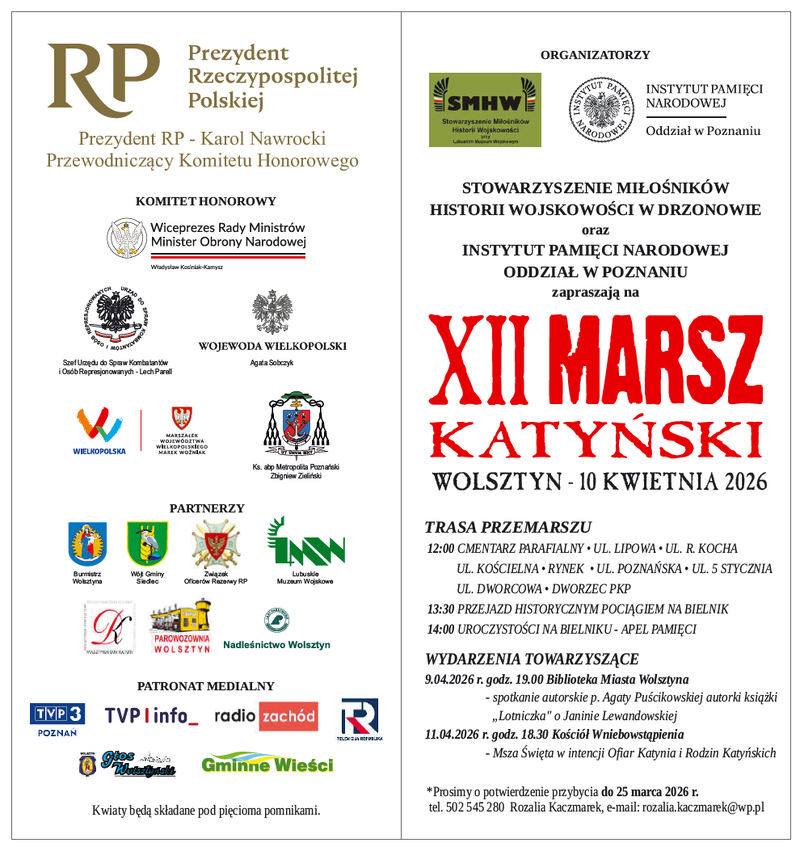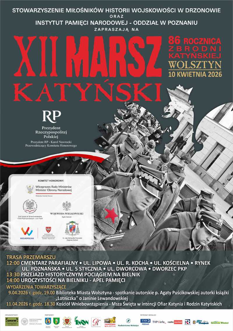 10 kwietnia 2026 r. po raz dwunasty ulicami Wolsztyna w ciszy i skupieniu przemaszeruje XII Marsz Katyński. Jego organizatorami są Stowarzyszenie Miłośników Historii Wojskowości w Drzonowie oraz Instytut Pamięci Narodowej Oddział w Poznaniu.