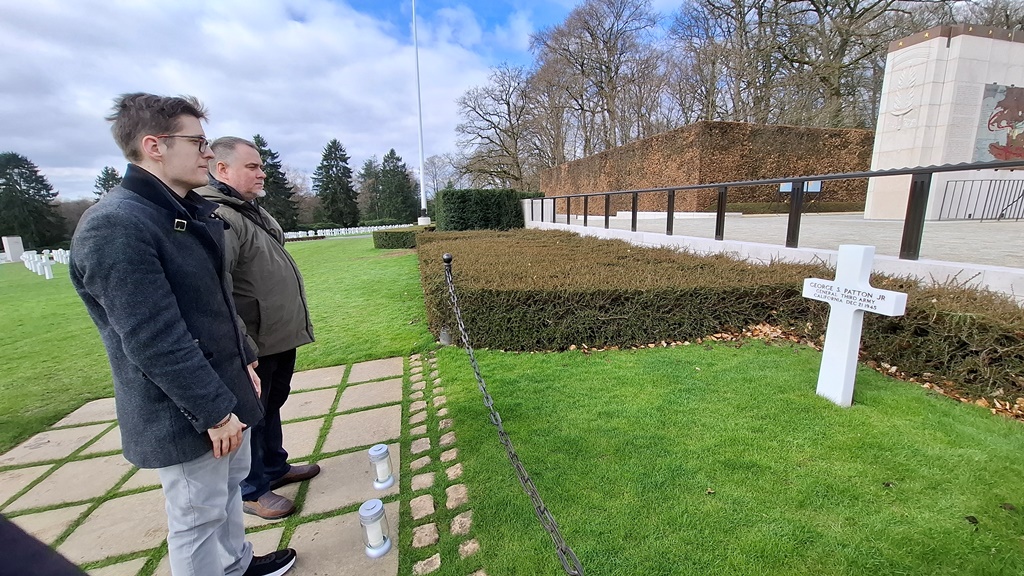 Przy okazji realizowanych zadań edukatorzy odwiedzili miejsca związane z obecnością Polaków i ważne dla naszych dziejów. W Luksemburgu delegacja zapaliła znicze na Cmentarzu Amerykańskim, w miejscu spoczynku gen. Georga Smitha Pattona, dowódcy 3 Armii Amerykańskiej. Armia ta, po walkach w Ardenach i nad Renem, wyzwoliła część Czechosłowacji i znaczną część Austrii, w tym obozy koncentracyjne: Mauthausen i Gusen. Generał zasłynął tym, że nie wydał Sowietom żołnierzy Brygady Świętokrzyskiej NSZ, włączając ją w skład swojej armii. Po wojnie 3 Armia wykonywała zadania wojsk okupacyjnych w Niemczech. Na Cmentarzu Amerykańskim spoczywają również żołnierze z tzw. „kompanii braci”, która stanowiła inspirację do powstania znanego serialu.